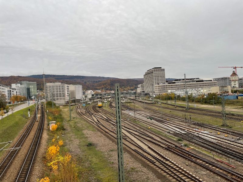 Wer etwas länger laufen und sich ein wenig eisenbahnesques Flair antun möchte, kann nach der Überquerung der BAB dem Wieblinger Weg nach rechts folgen und an der Kreuzung Gutachweg durch eine Unterführung unter der Bahnstrecke hindurch und dann den Gleisen vorbei am alten Bahnbetriebswerk, Bauhaus und Kino Richtung Bahnhof laufen. Ich werde diesen Teil erst in einer späteren Etappe mitnehmen.