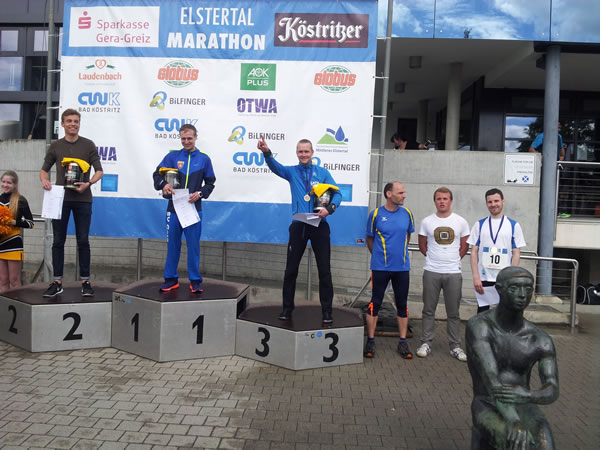 Schöner Wettkampfausflug mit Vereinskollege Daniel zum Stadtlauf Chemnitz. Erreichte Platzierung sehr gut. Erreichte Zeit und Tempogefühl nicht ganz nach Wunsch. Die Beine fühlten sich beim Einlaufen richtig gut an und ich war guter Dinge für ein kurzes, straffes Rennen. 9.30 Uhr sollte es los gehen. Die Strecke wurde aber ewig nicht freigegeben. Ich verlor dabei leider etwas Spannung für das Rennen. 9.47 Uhr fiel dann endlich der Startschuss. Der erste km verlief genau nach Wunsch mit 3min39s/km. Atmung war OK. Der zweite km, wo es dann anfängt anstrengend zu werden fällt die Pace dann gleich auf 3min51s/km ab. Irgendwie kommt mir das von meinen Tempoeinheiten bekannt vor, wo ich immer eine ganze Zeit brauche mich an ein hartes Tempo zu gewöhnen. Der dritte km noch schlechter mit 3min56s/km. Ich denk mir, jetzt wirds aber ganz mies. Dieses Tempo bin ich bei meinen Endbeschleunigungen gelaufen. KM 4 wirds dann wieder etwas besser mit 3min44s/km. Ich hab das Gefühl ab jetzt schießt sich mein Körper auf ein hartes Tempo ein. Die letzten 860 m liefen dann wieder mit 3min38s/km wunschgemäß. Die Endzeit lässt auf eine 5 km Zeit von 18min48s hochrechen + ca. 1% GPS Abweichung hätte das gerade für ganz knapp Sub 19min gereicht. Eine 18min30s hätte ich mir schon erhofft auf 5 km. Was solls. Hab alles gegeben, war heute nicht mehr drin. Ein schöner sonniger Tag war es trotzdem.