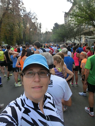 Habe mich für die Hitze vorbereitet , Trinkgurt mit 1 x Wasser + 1 x Iso Getränk hergerichtet, nur dünnes Laufoutfit mit Kappe hergerichtet. Am Start noch sehr gut drauf, siehe Foto, und dann ging es los.