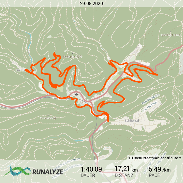 Zwei Stunden ballern. Heute war Kerwelauf im Nachbarort. Teams mit bis zu acht Mitgliedern, durften sich quasi als Staffel messen. Die Strecke etwa 600m lang, mit einem kurzen Hügel. Das ergab 43hm bei acht Runden, also nichts gravierendes, aber vorhanden.