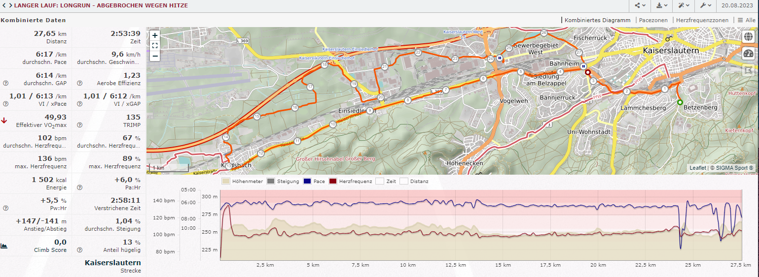 Auch hier hatten wir Glück, das Wetter spielte mit, zumindest die ersten 28km. Hiernach bogen wir dann auf die laaaaange Zielgerade und blickten genau in die Wetterfront, die uns doch noch nass machte. Aber besser auf den letzten vier Kilometern, als auf den ersten Vier. Von daher ein perfekter Longrun bei idealen 16°C. Zumal auch meine HF wieder besser mitspielt und fast wieder die Werte hatte, die ich vor 2 Jahren an den Start brachte. Das beruhigt mich.