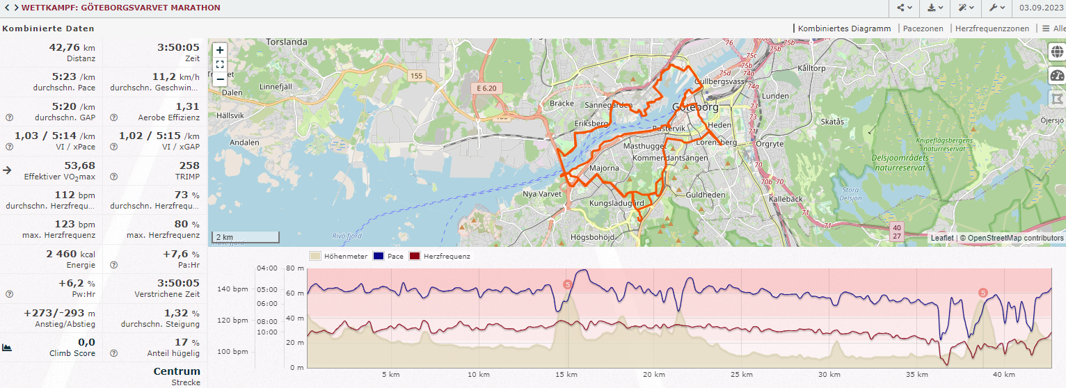 Aber ich war auch komplett fertig im Ziel. Wie ich erst später erfuhr übersah ich im Ziel eine Bekannte komplett, obwohl sie nach mir rief. Und sie meinte ich wäre zunächst getorkelt und das DRK hätte sich schon einsatzbereit gemacht. Aber es war alles gut. Ich brauche immer einige Minuten bis ich wieder in die Realität zurückkomme. Denn auch wenn ich nicht mit der Absicht PB gestartet war, ich wollte schon so schnell als Möglich von A nach B kommen und dabei alles raushauen was geht. Habe ich gemacht, offensichtlich.