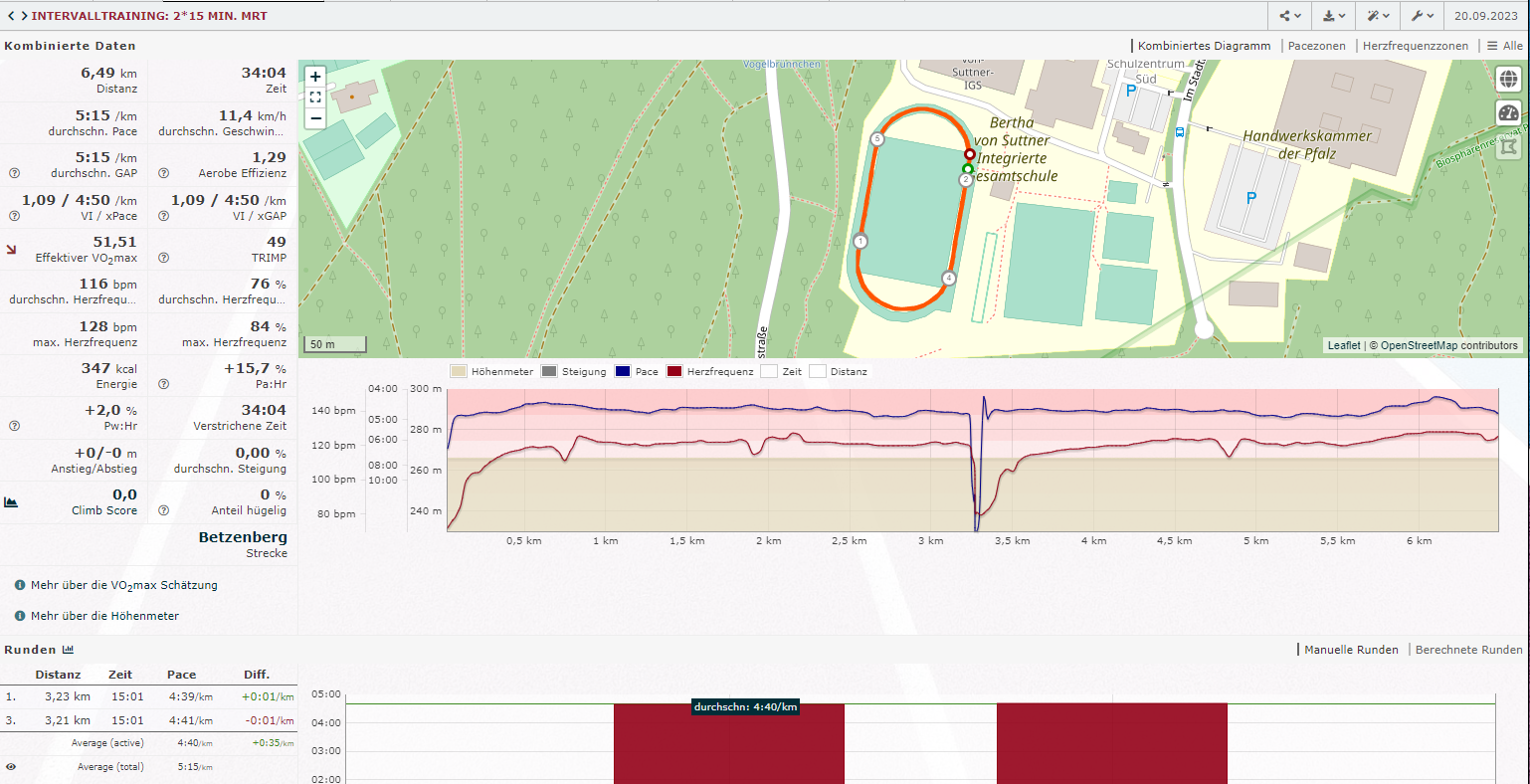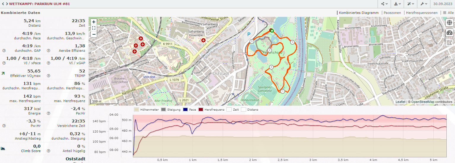 Ihr seht schon wo das hinführt, anstatt einfach 2-4km locker zu joggen, kam also dieses Segment zum zum Einsatz und obwohl ich langsam startete kam ich meiner PB bis auf 10 Sek. nahe. Soviel zum Thema locker joggen.