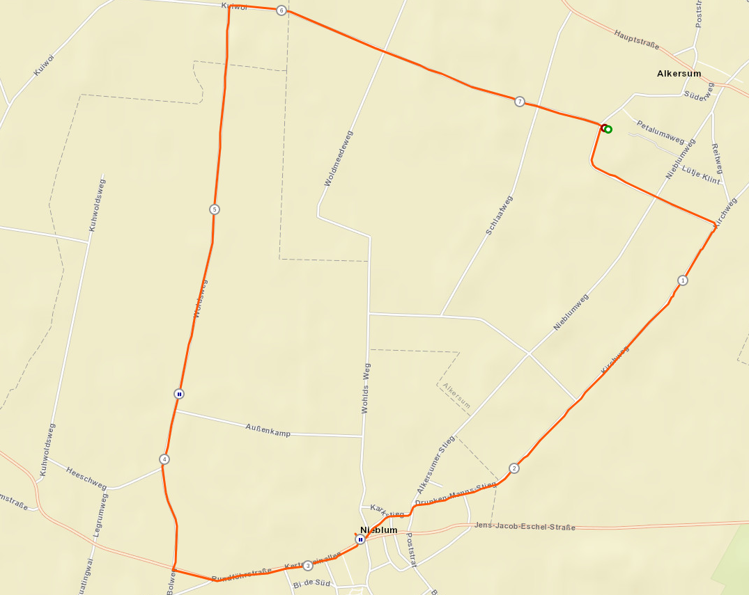 Und so bin ich an meinem letzten Urlaubstag um 5:01 Uhr aufgestanden um 5:13 Uhr auf einer Straße ins Nirgendwo vom Wind als Spielball genutzt zu werden. Also ging es noch einmal die lange Kurve nach Borgsum um nach einer kleinen Schleife wieder zurück.