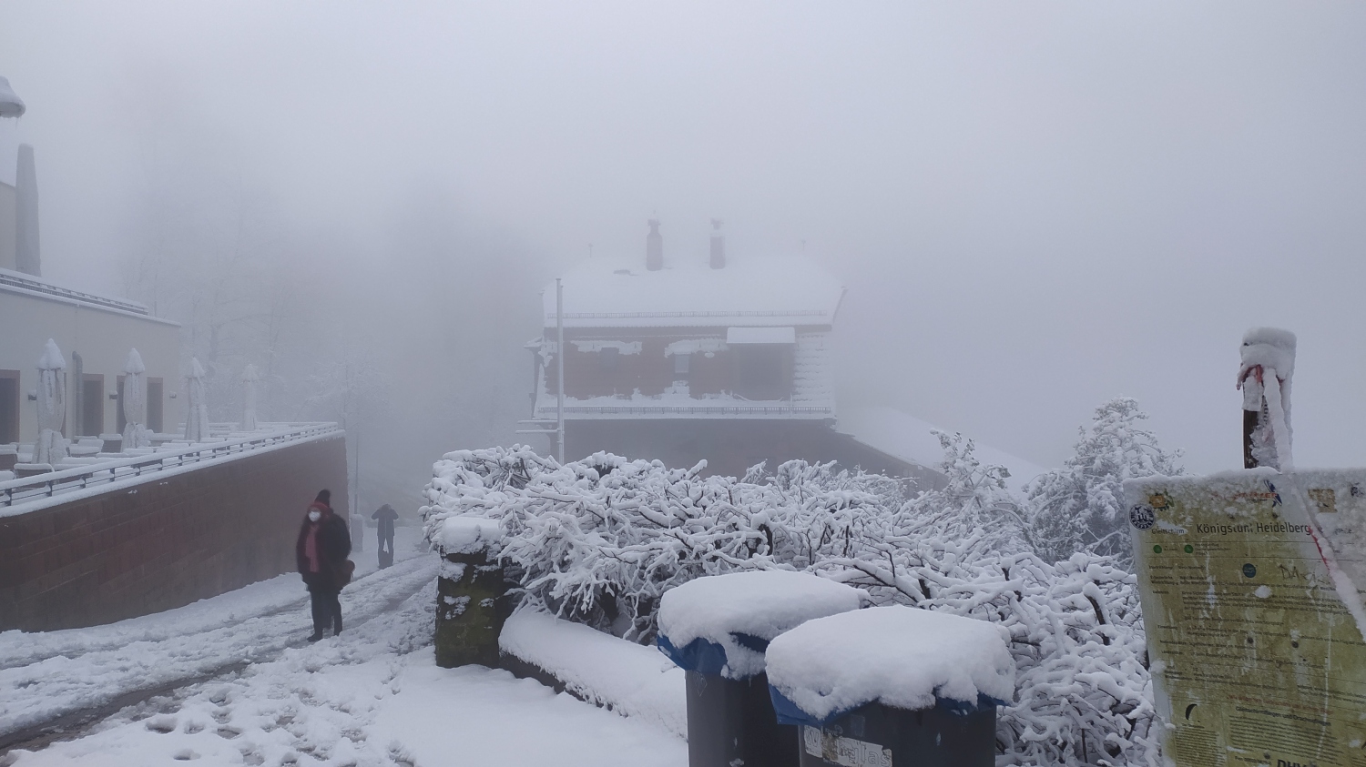 In Heidelberg war es sonnig und es zog uns schon früh hinauf auf den Königsstuhl. Dort war dann auch Schnee zu finden, reichlich sogar. Aber im Tal war es grün. Der Neckar hatte sich allerdings deutlich mit Wasser weiter aufgefüllt.