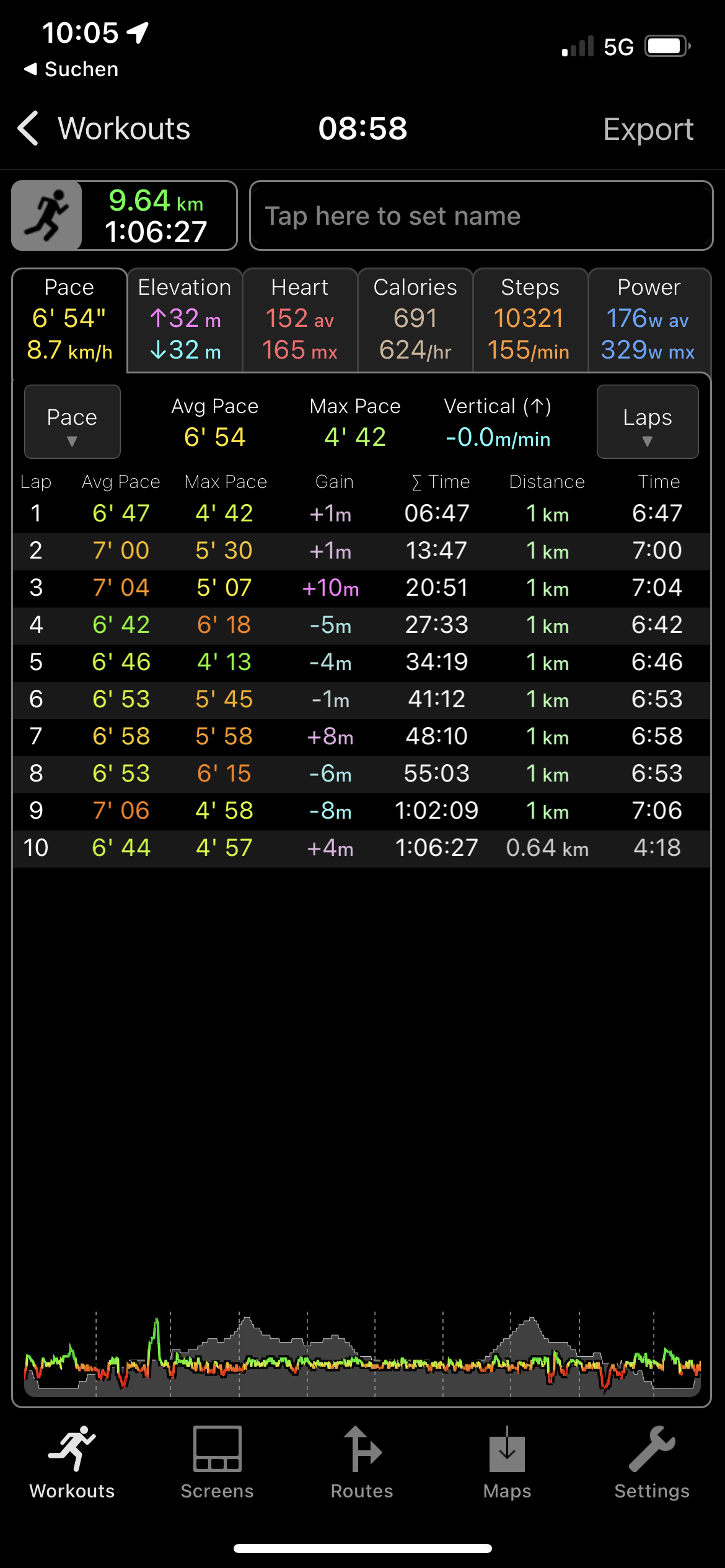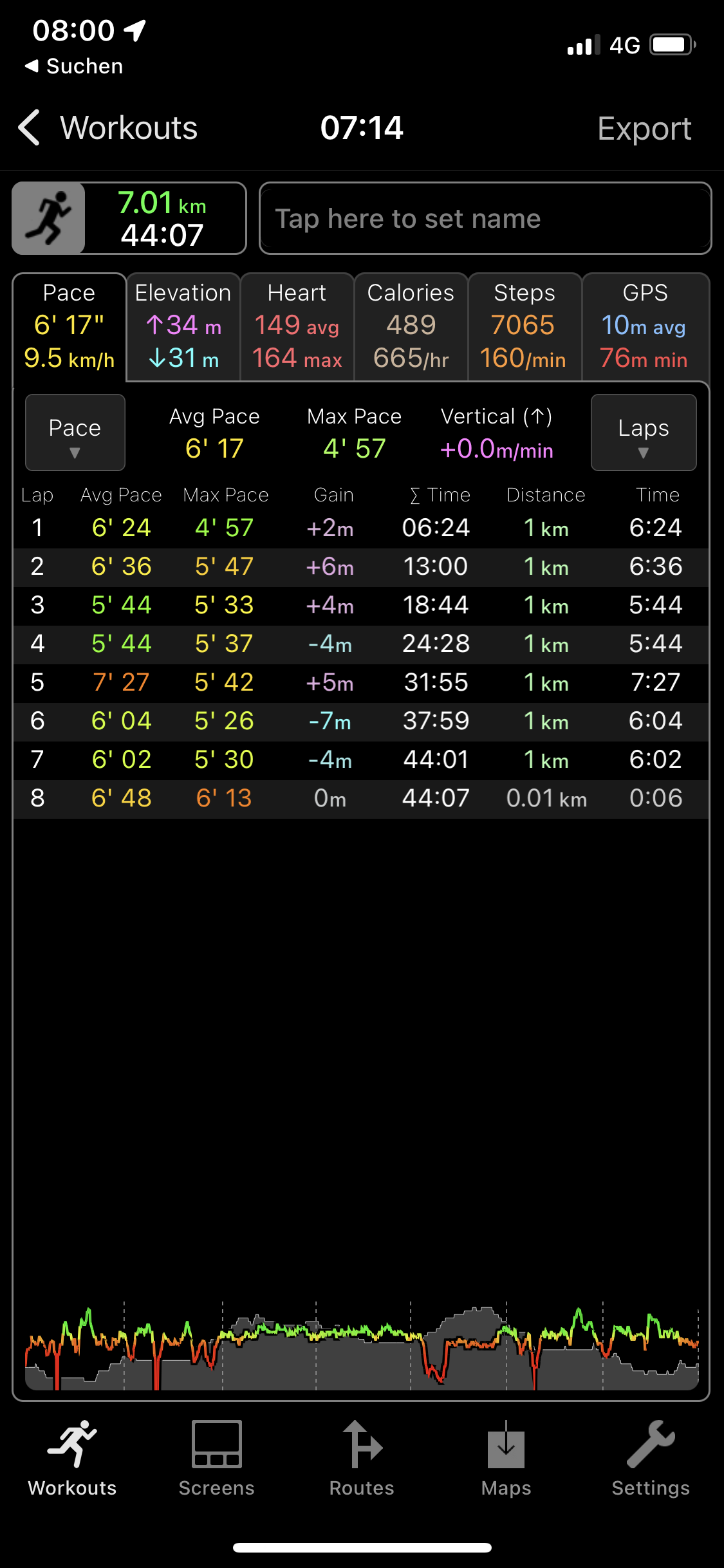 Km 3 und 4 kann nicht stimmen, da ich im 2. Intervalletwas langsamer gelaufen bin. Hatte extra weiteres Intervall gestartet um zu sehen wie viel langsamer und dann ließ mich aber offenbar das gps im Stich? EDIT: hab mir die aufgezeichnete Strecke angesehen, nein, passt so.