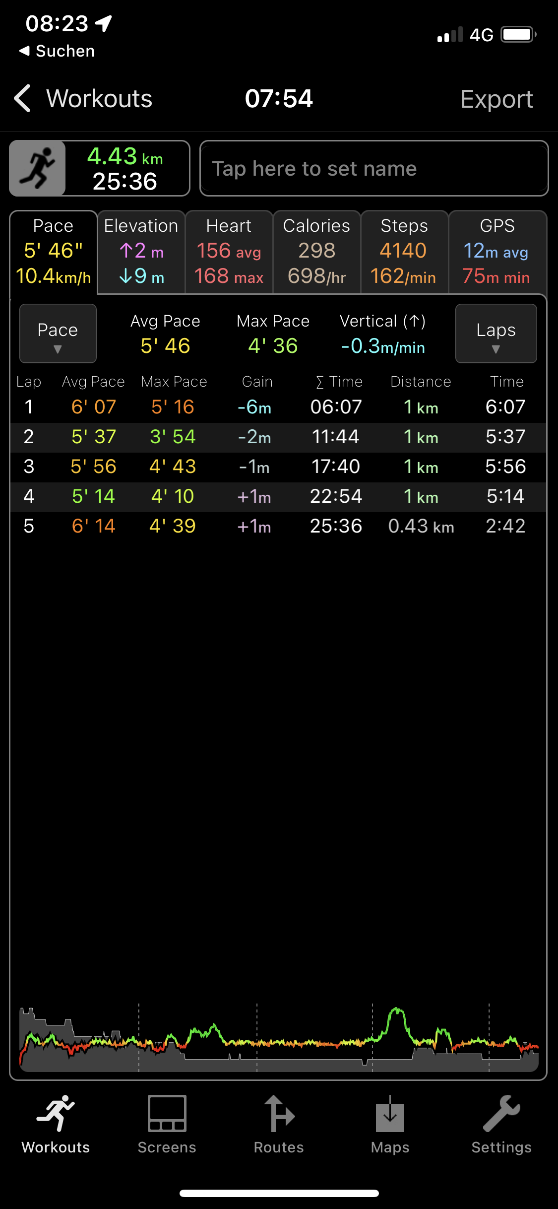 Km 3 und 4 kann nicht stimmen, da ich im 2. Intervalletwas langsamer gelaufen bin. Hatte extra weiteres Intervall gestartet um zu sehen wie viel langsamer und dann ließ mich aber offenbar das gps im Stich? EDIT: hab mir die aufgezeichnete Strecke angesehen, nein, passt so. 👌🏻