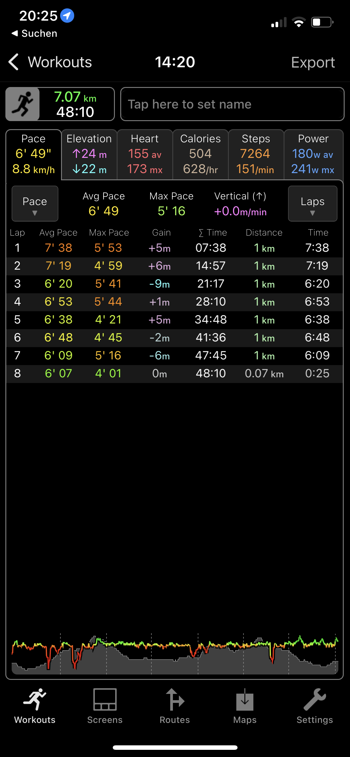 7km früh am Morgen. Wollte bissl länger aber fühle mich durch diese Hitze schon morgens einfach platt. Laufe echt nicht gern wenn mir der Schweiß nur so herunterläuft. Hab kurze Gehpause nach 4.12km gemacht, da pralle Sonne auf dem Wegstück.