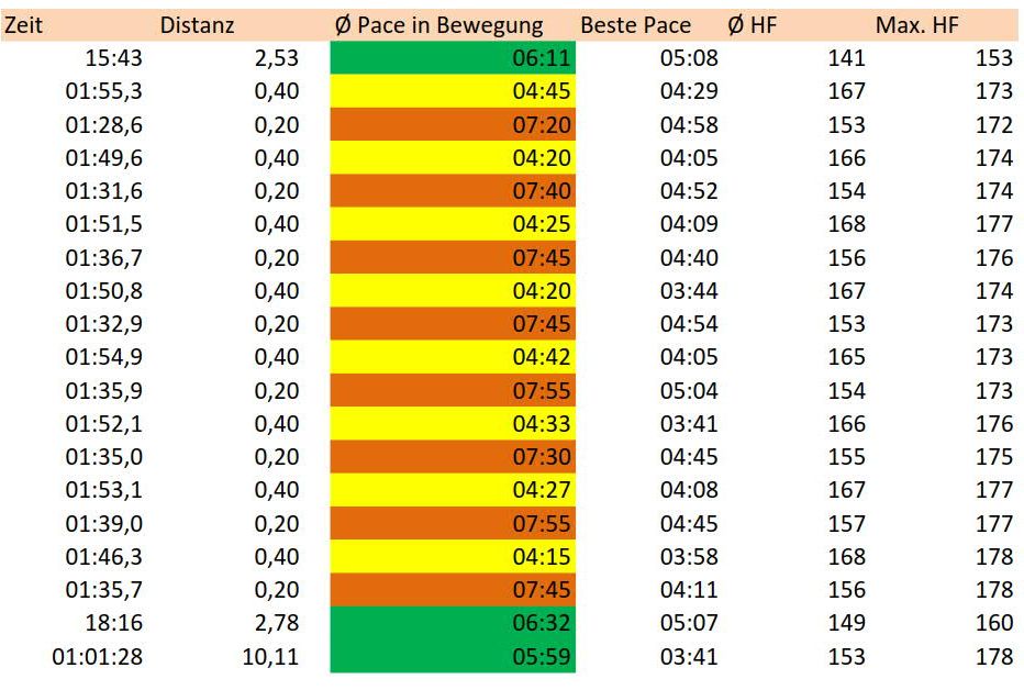 Ja, das denke ich auch...vor allem ist es ja nicht so, dass ich generell keinen Bock auf Sport habe und mich ständig zum Laufen zwingen muss Habe bisher auch nie Einbußen bemerkt, wenn ich zumindest 2 x "normal" in der Woche laufen war. Denke man kann den Trainingsstand auf diese Weise ganz gut "konservieren". Überlege nur gerade, ob ich besser die Intervalle von letzter Woche machen sollte ( nur 4 x 1.000)Dartan hat geschrieben:Ich denke, wenn einen der Körper durch akute Unlust sagt, dass er gerne eine Pause hätte, ist es durchaus sinnvoll, auch mal darauf zu hören. Besser als mit der Brechstange das Training durchzuziehen und sich ins totale Übertraining zu manövrieren.