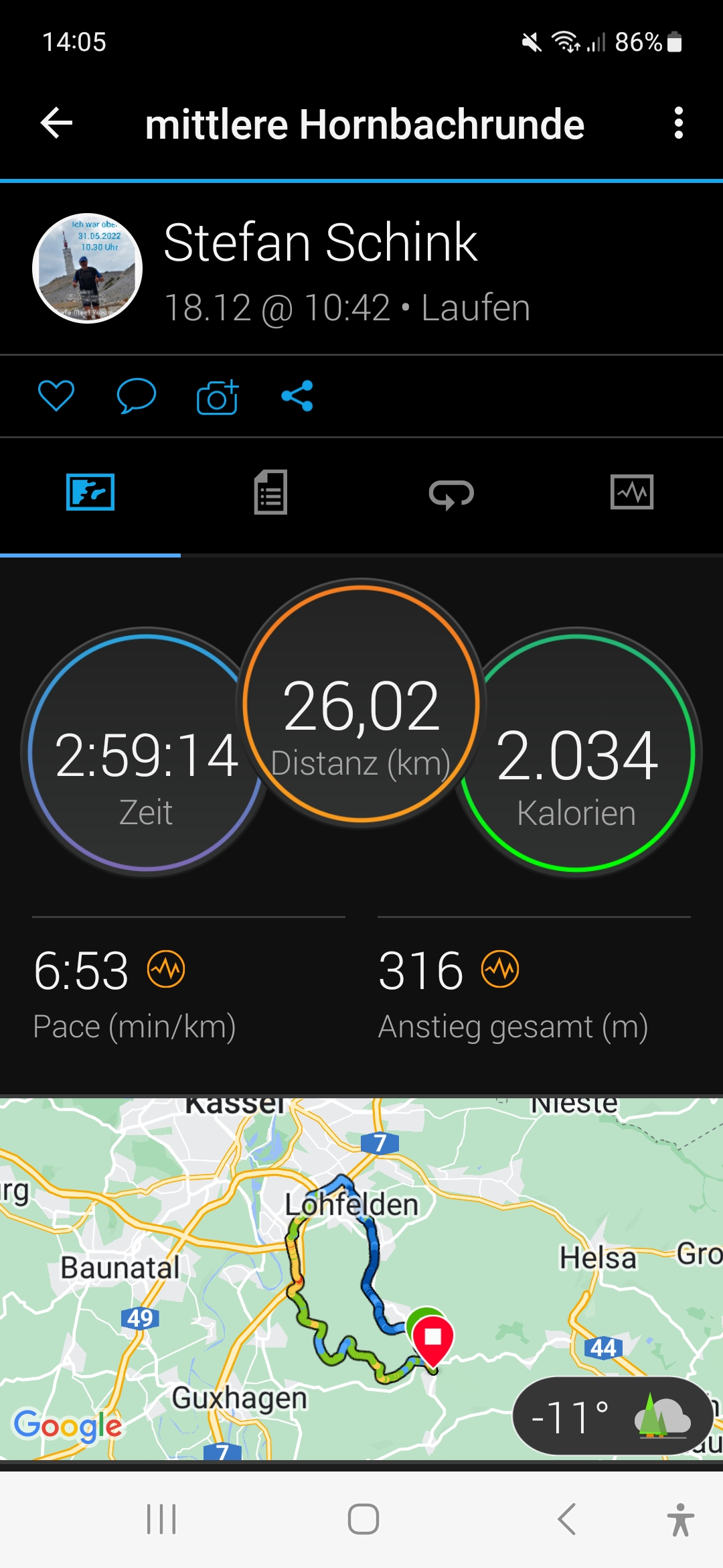 Warum wohl? Na , ganz einfach. Da es morgen auch tagsüber Minusgrade geben soll und ich einen etwas längeren Lauf machen will, kann ich das Geschenk gleich mal testen.