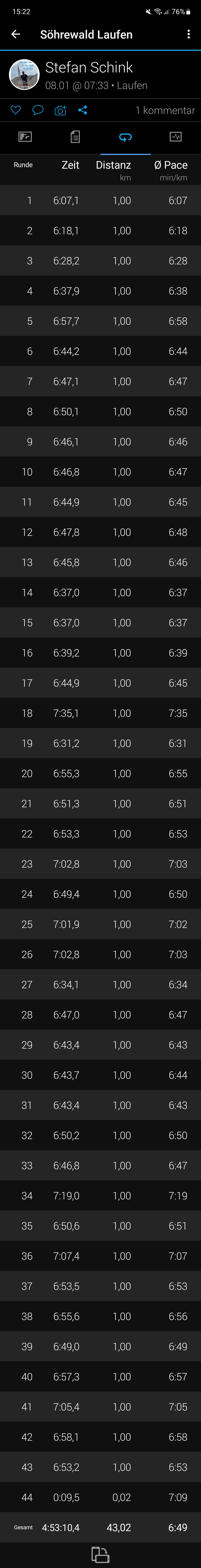 Ich war abgelenkt durch das Quasseln mit einem Laufkumpan , den ich an der Fulle Marie (Kneipe am R1) getroffen habe. Wir sind dann zusammen bis zum Auebad gelaufen und ich habe meine Uhr total missachtet. Eigentlich wollte ich """nur""" den Marathon laufen, aber durch die Quasselei habe ich es verpasst die Uhr zu stoppen. Also machte ich den 43. Kilometer noch voll und hatte einen Miniultra :-):-):-) in den Beinen.