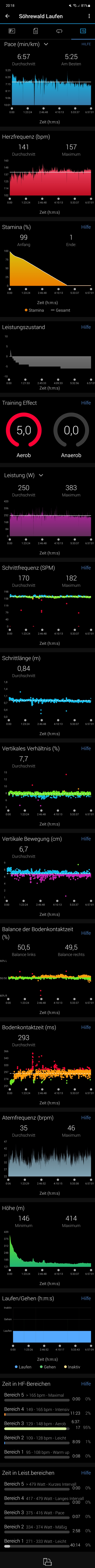 Meine Uhr ist übrigens auch noch lernfähig. Beim langen Lauf am vergangenen Sonntag blieb die Stamina-Funktion bereits nach ca. 4:45h (ca. 42Km) auf Punkt 1 (von 100) stehen und am Mittwoch NACH dem 10'er zeigte sie mir noch eine Restlauflänge von 50;5 Km an, also insgesamt 60,5 Km an. Ich bin mal gespannt, wo da die Reise noch hingeht.