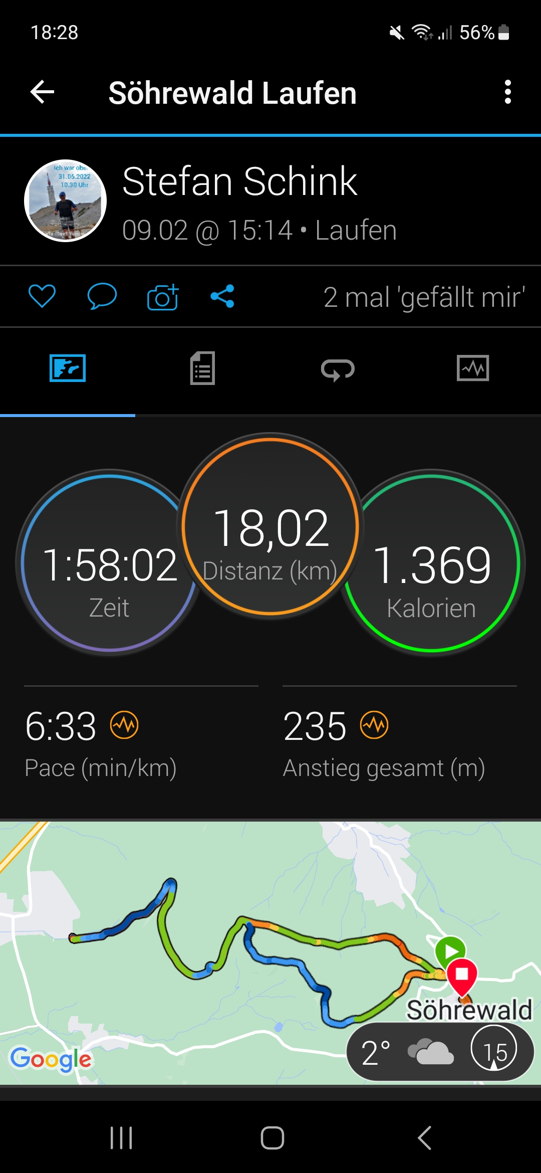 1315Alles Gute (nachträglich) noch...Leissprecher hat geschrieben: 29.01.2023, 18:43 Ich habe mir heute zu meinem 60. Geburtstag einen 60 Km langen Lauf geschenkt.