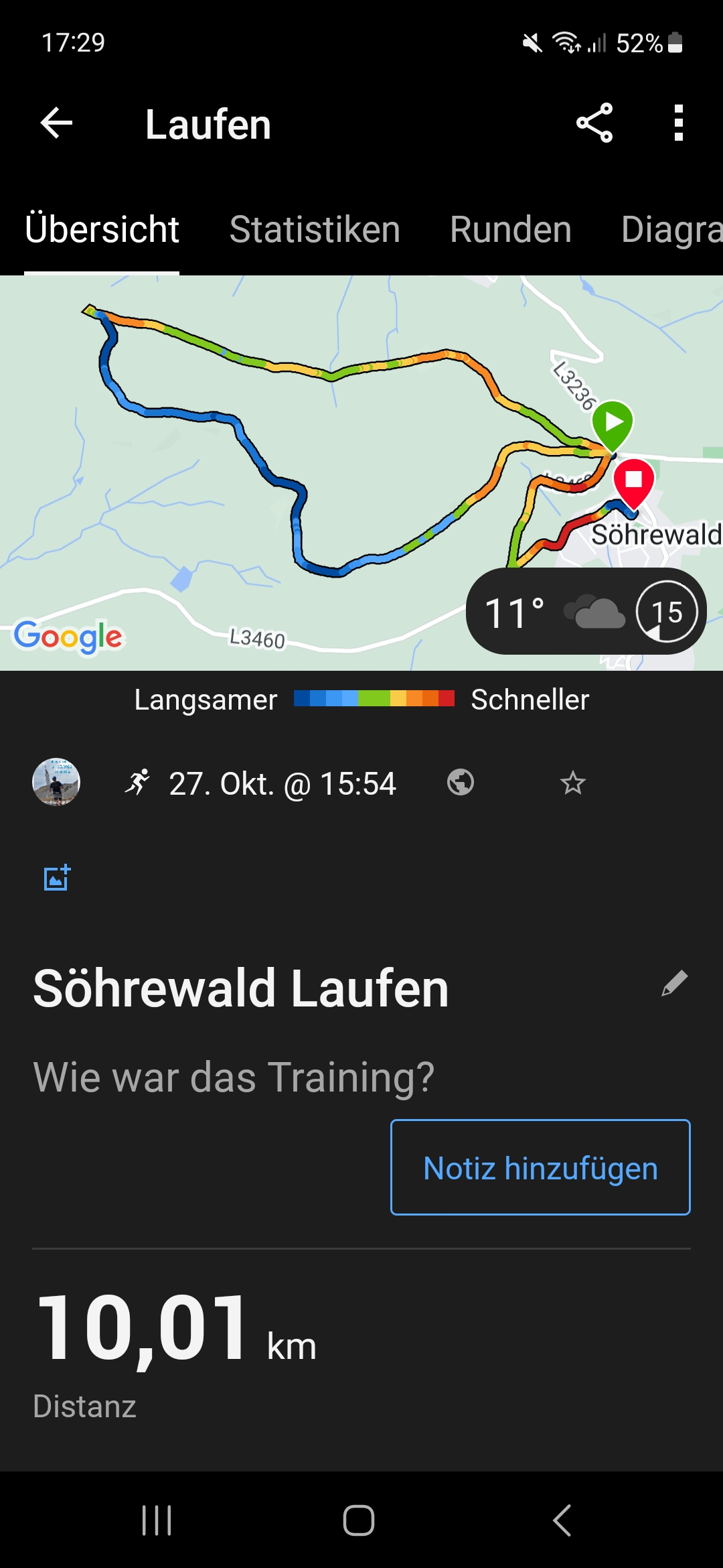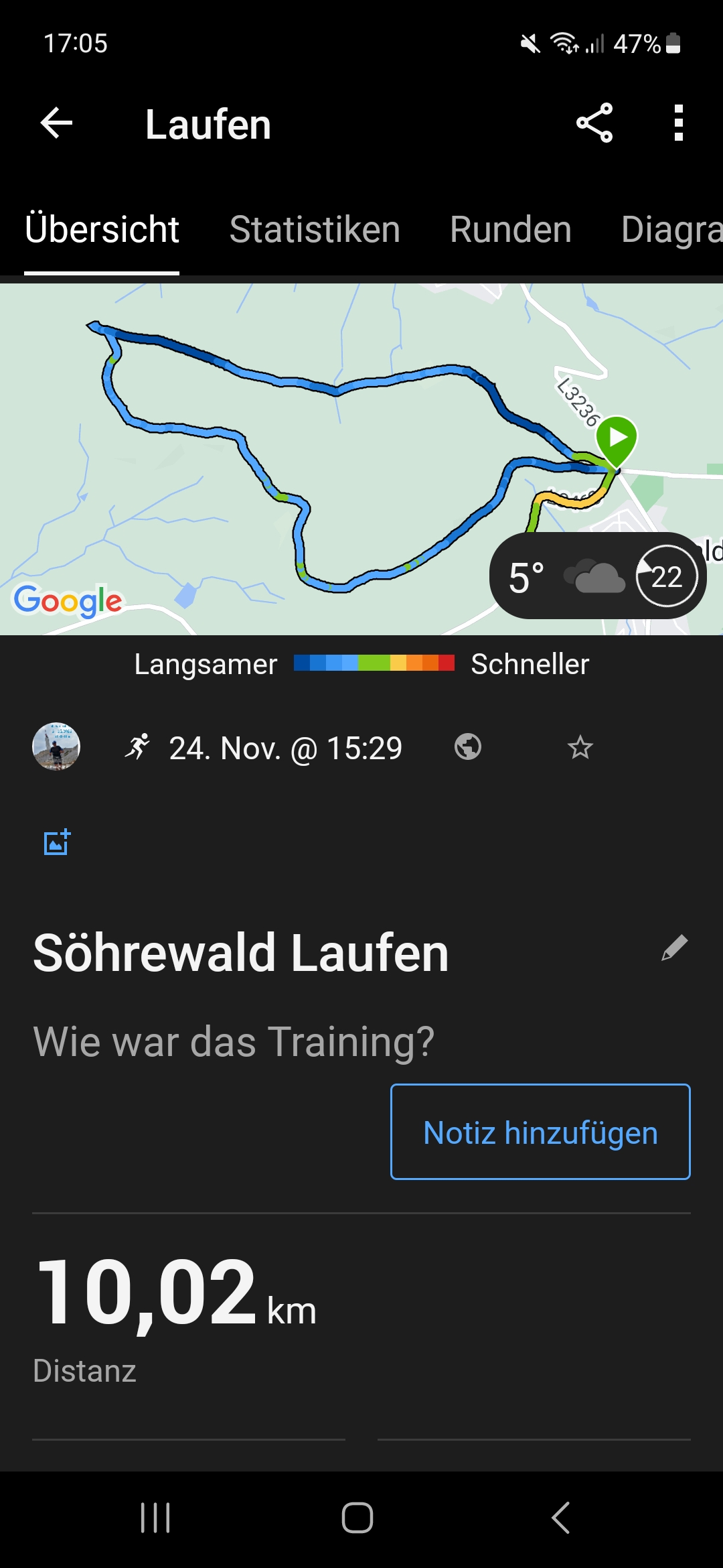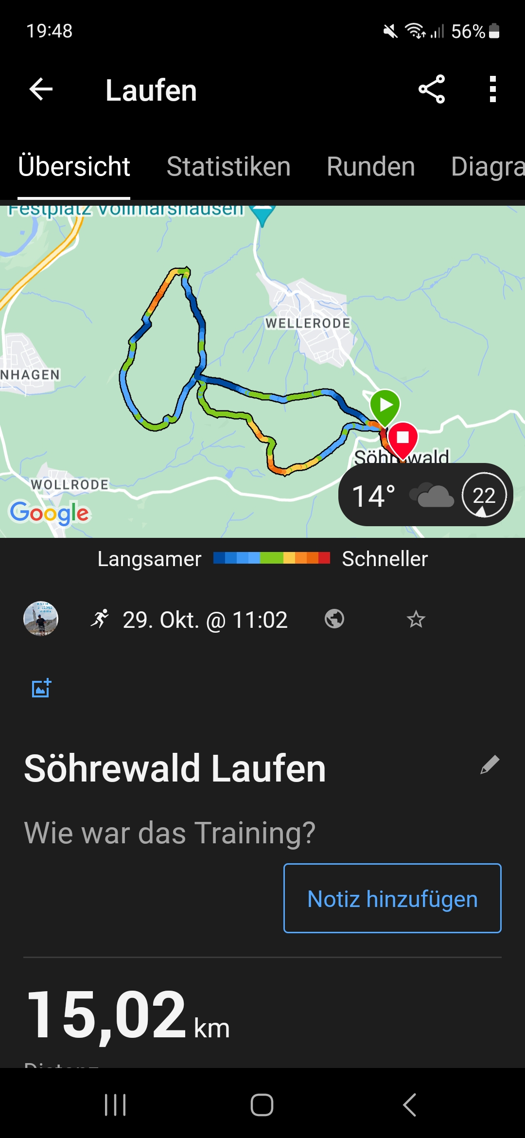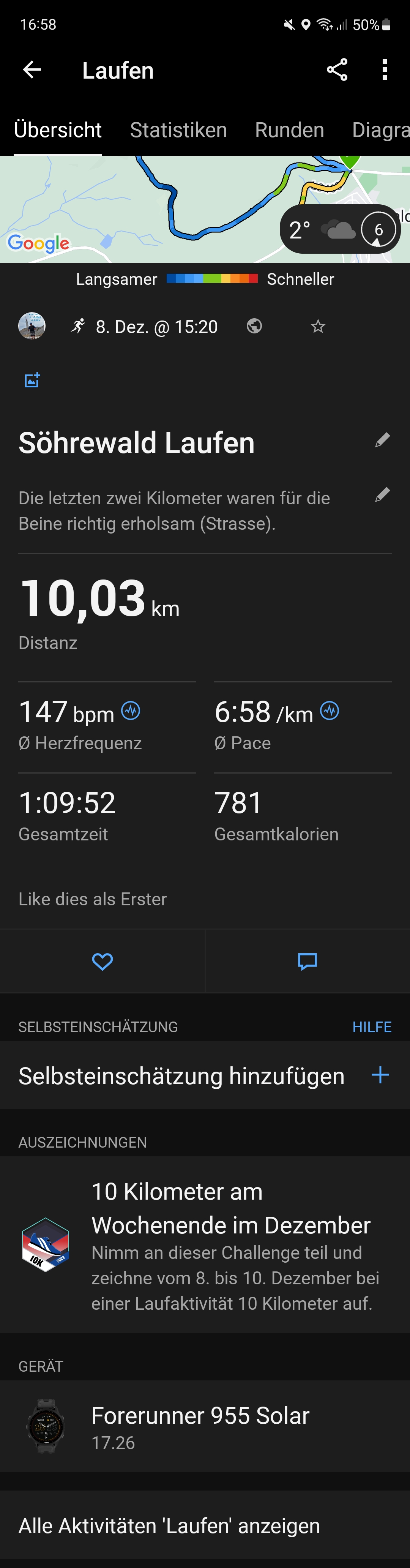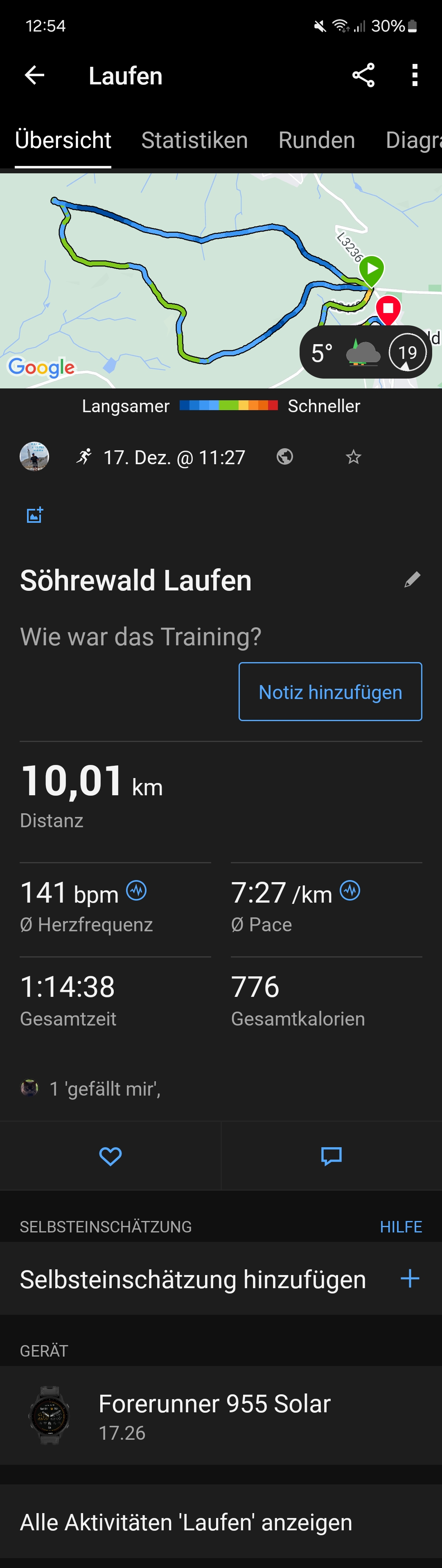 Auf jeden Fall hätten wir gestern auch zusammen laufen können, bin ähnlich weit in fast derselben Zeit gelaufen – für mich ein Meilenstein nach diesem verkorksten Jahr …