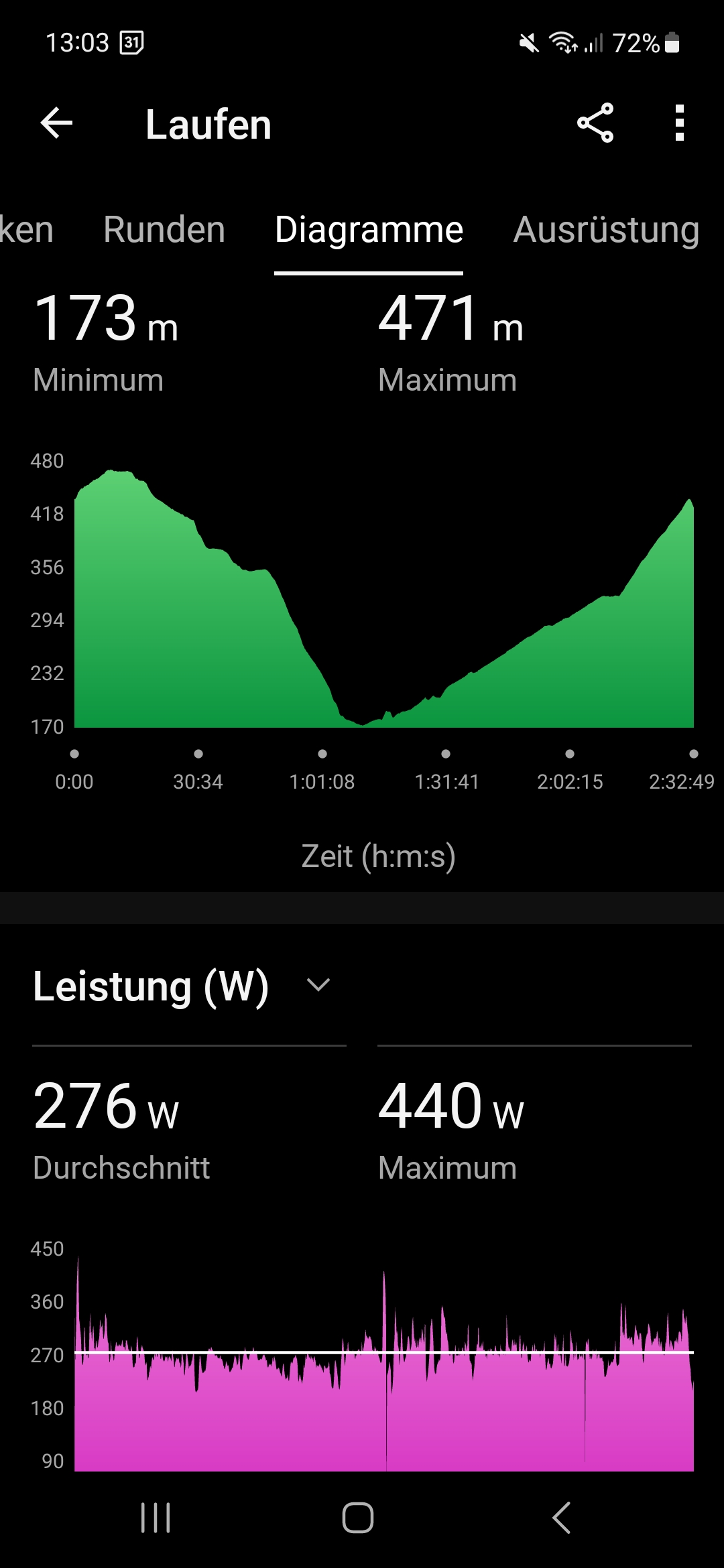 PS: Heute mehr Kilometer , mehr Höhenmeter aufwärts und trotzdem war der Km-Schnitt besser als am vergangenen Freitag.