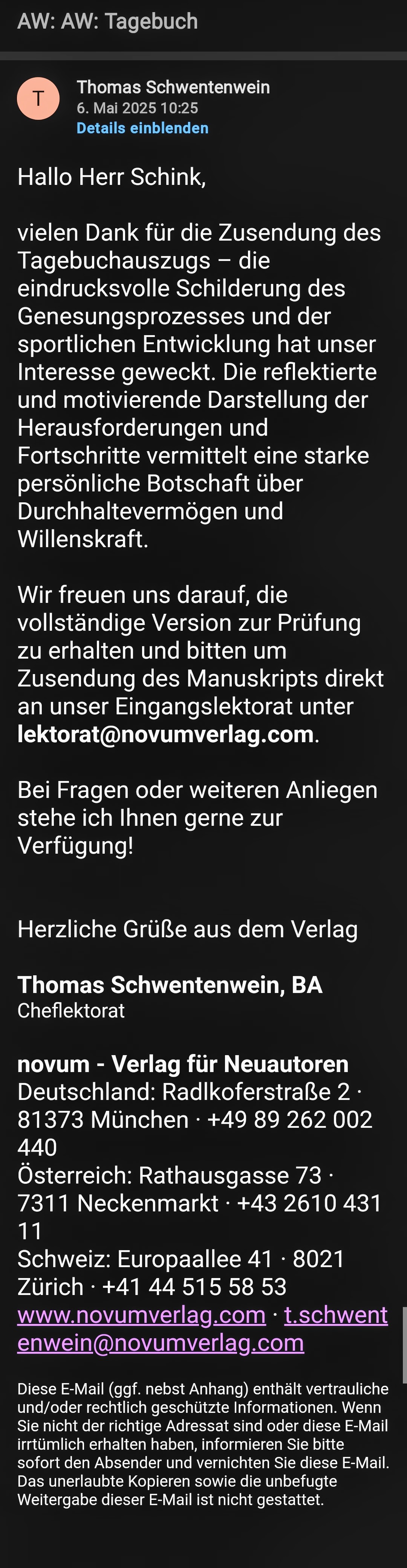 Ich habe schon mehrere Verlage angeschrieben und auch schon zwei, für mich, positive Antworten erhalten (siehe Screenshots).