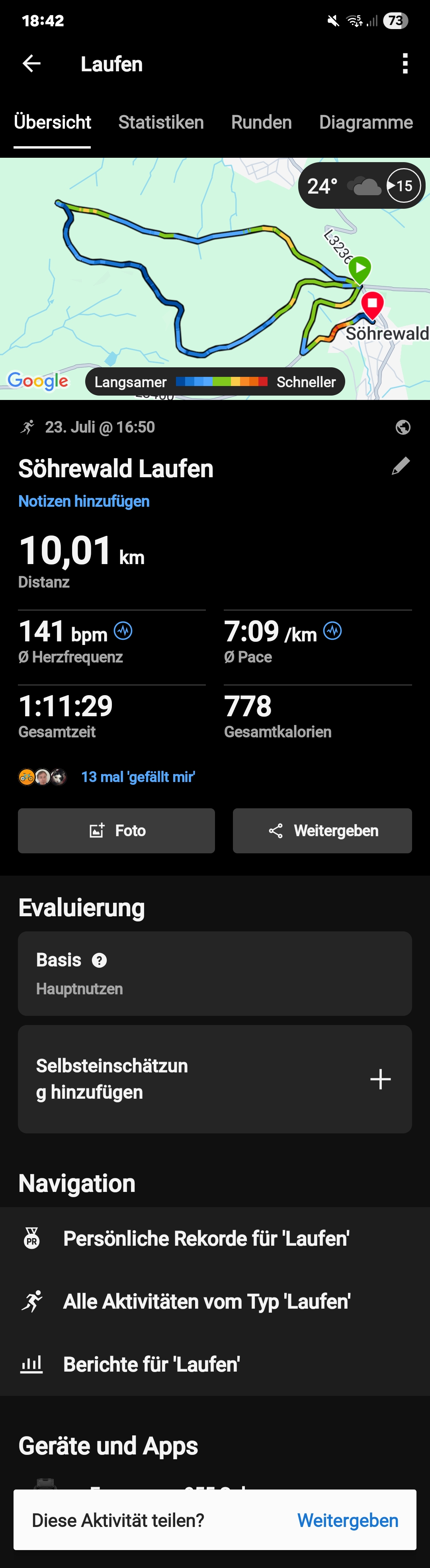 Garmin schreibt 34 Grad, macht pro Kilometer 3,4 Grad, ergo ist es bestes Stefanlaufwetter.