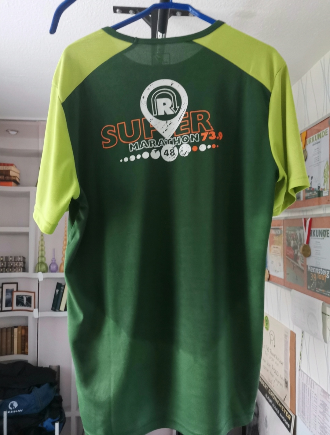 Ja, die Läufer sind ein komisches Volk... Da hängen überall Medaillen an den Wänden und T-Shirts an den Schränken. Manch heiliges Shirt wird nur am Wettkampfftag getragen... Ach, herrlich!