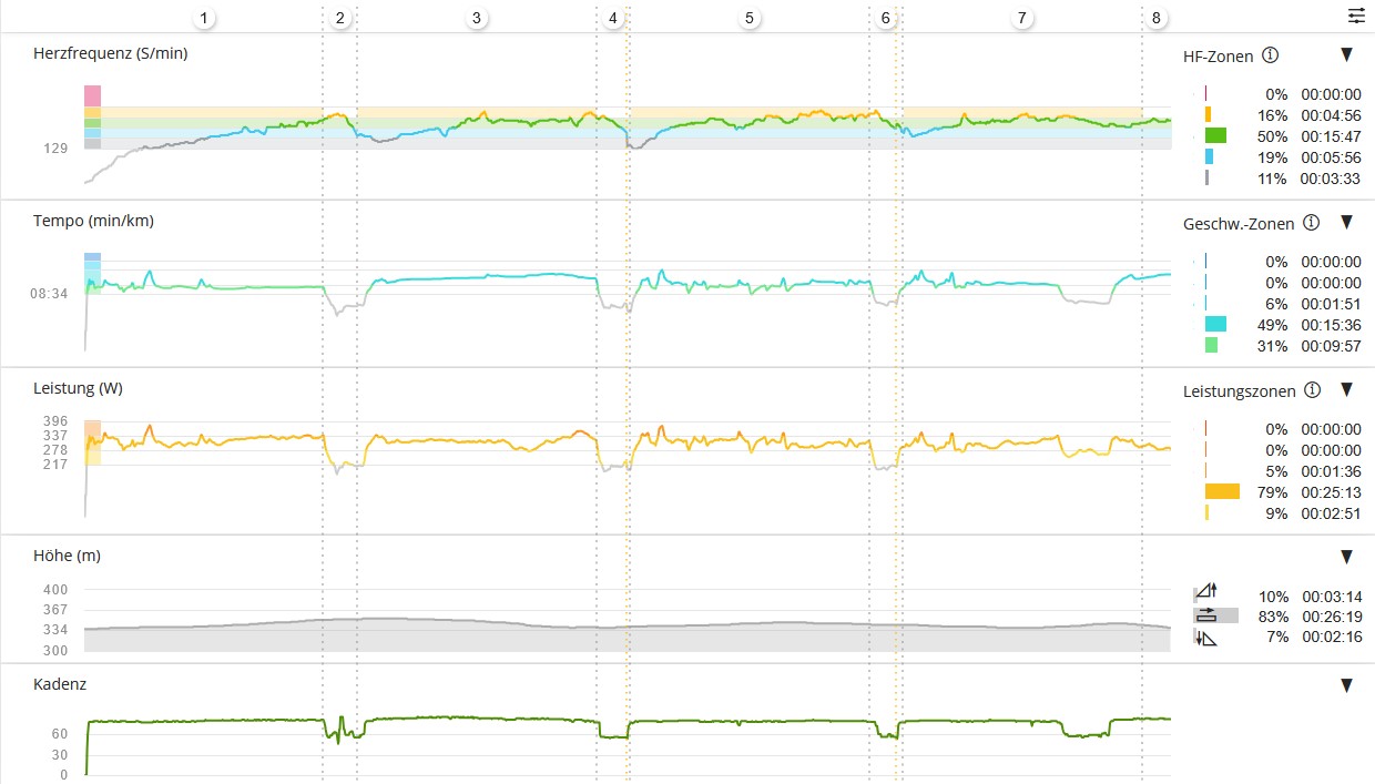 Habe mich beim ersten Intervall schon gewundert wie lange ich rennen muss, beim 2. Intervall habe ich dann gesehen, dass die Intervalle eine MInute länger als geplant sind. Den Lauf habe ich dann trotzdem fortgesetzt und hat auch ganz gut geklappt.