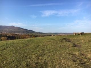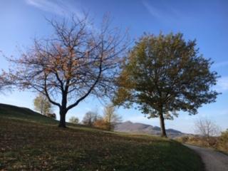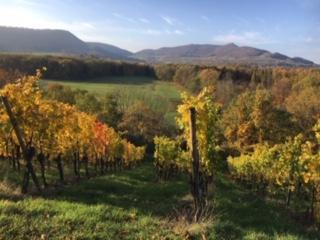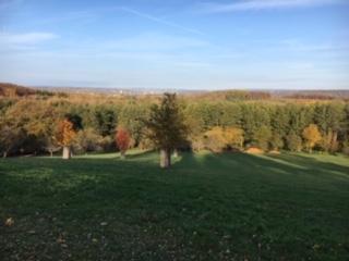 Die Runde war sehr abwechslungsreich. Breitere Wege, dann ein Single Trail mitten durch den Wald, ein kleiner Aussichtshügel (das Bürrle) wurde halb umrundet und dann cross bergauf zum höchsten Punkt. Mit wunderbarer Aussicht auf die gegenüberliegende herbstbelaubte Teck mit der markanten Burg. Sogar ein paar kleine Weinberge am Ortsrand von Nabern wurden passiert.