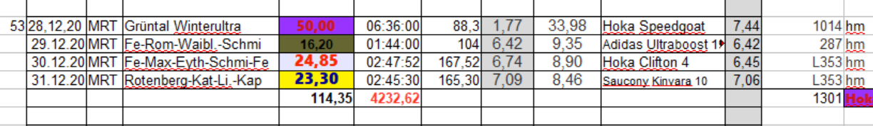 Jetzt arbeite ich daran die KW 53 noch richtig mit Vollgas abzuschließen und dann im Km Spiel noch ein paar Plätzte bei den LG Ultraläufern gut zu machen.