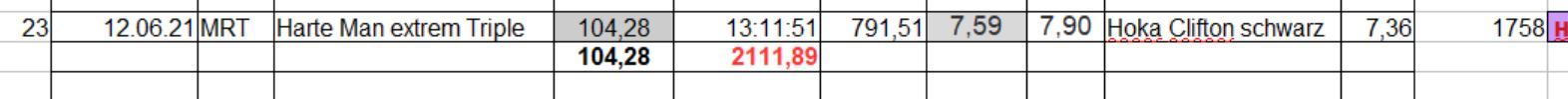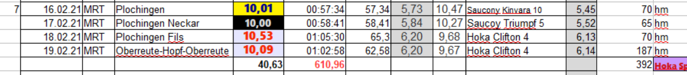Nur eine Einheit, die ich auch gleich dazu benutzt habe meine nagelneuen HOKA Clifton 7 einzuweihen. Ich weiß das manche das als Anfängerfehler einstufen würden, aber ich habe diese Modell in 2.Ausführung schon länger in Gebrauch und weiß, dass das bei mir funzt.