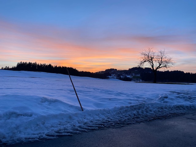 War um kurz nach 8:00 Uhr vor Ort am Parkplatz und bin kurz nach Sonnenaufgang losgelaufen Bei zapfig kalten windigen Wetter (da noch -8°) ging es auf hartgefrorener Schneedecke auf die Forstautobahn. Das war dann doch auf Dauer deutlich anstrengender durch die gedämpfte Aufprall- und Abstoßwirkung und denn damit eingeschränkten Vortrieb. Durch diesen Einfluß konnte ich nur eine sehr gemäßigte Pace ererichen, vor allem an den kurzen steilen Wegstellen. Je später es wurde um so weicher wurde der Untergrund. Im Ziel hatte es dann 3° Plus. Nach über 5 Stunden war es dann soweit und ich konnte einen schönen Sonntagmorgen zum Abschluß bringen und mich pünktlich um 13:30 an den Mittagstisch setzen und so richig ungeniert zuschlagen.
