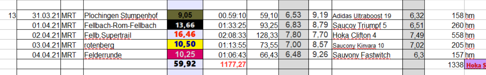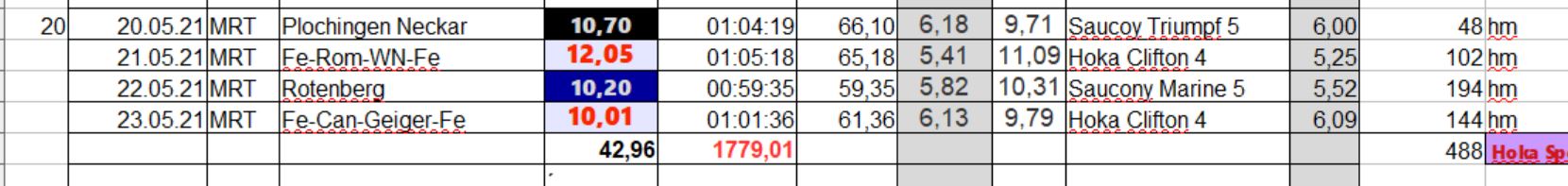 Ein bißchen mehr Laufkilometer als letzte Woche, aber da ist noch Luft nach oben Die nächste Woche wird es wieder mehr.