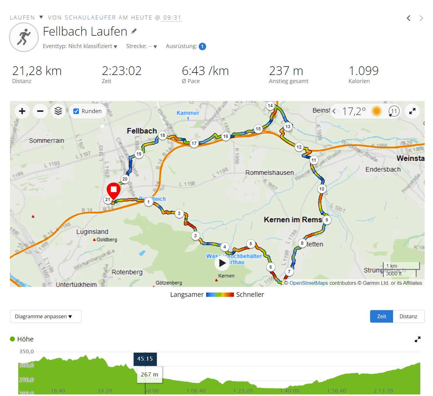Ich hatte mir ja vorgenommen die ca. 1,65 km lange Runde mindestens oft zu laufen bis ein kurzer Ultra auf dem Tacho steht, also nach der Zählordnung des 100 MC mindestens 50 km. Dettenhausen im Schönbuch mit seinem kostenlosen 24-h Lauf, denn bin ich schon 4-mal gelaufen, allerdings nur beim Debut 2015 über die vollen 24 h und damit auch das beste Ergebnis erzielt. Die Jahre darauf habe ich mich immer freiwillig gezügelt, da 4 Wochen später der Mauerweglauf stattfindet. So auch 2022- nach 2 Coronabedingt ausgefallenen 24-h Läufen . Und ich dort ja noch gemeldet bin, aber durch die Herzgeschichte, nicht schlüssig bin was geht. Ob es überhaupt Sinn macht dort anzutreten. Also den Stier bei den Hörner gepackt und weitergelaufen nach den eingesackten ca. 50 km. Trotz der Wärme (der Wind half es etwas erträglicher zu machen) ging es erstaunlich leicht von der Hand, langsam aber stetig eine Runde nach der anderen zu absolvieren. Was etwas nervt sind 2 fette Blasen an den großen Zehen. Das hatte ich so noch nie, dabei laufen ich einen sattsam bekannten Schuh, mittlerweile mein Dritter aus der Serie. Entweder wurde das Nachfolgemodell im Zehenbereich geändert - oder - was ich eher vermute: Ich habe die falschen Socken an. (die Sneakers hatte ich auf langen Distanzen noch nie an, vermutlich lag da der Fehler) Die Schuhe wechselte ich, nachdem das Blasenpflaster drauf war, trotzdem vorsorglich. Der Saucony war mir dann aber im Vergleich zu hart gedämpft. Schon nach einer Runde, erneutes Bäumchen wechsle dich. Die Adidas kamen drauf und ich blieb dabei, bis km 90. Der Rest ging wieder an die HOKAs mit denen ich gestartet war.