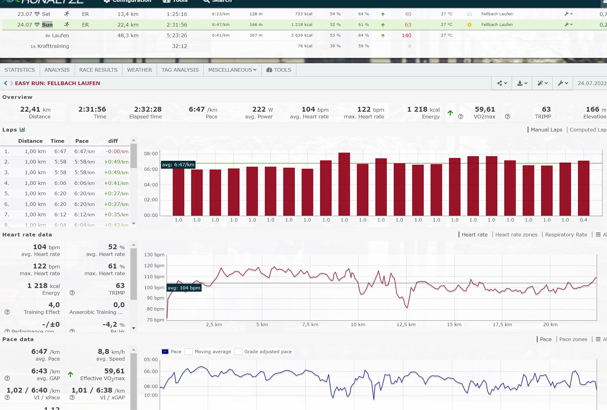 Im Gegenteil, meine Uhr hat mir nur 49 km aufgezeichnet und somit eine weitere Garmin Ultraauszeichnung 50k verwehrt, lediglich eine für Marathon. Aber das lässt sich verschmerzen. Die 5 Runden konnte ich sehr gleichmäßig laufen mit 1:23, 1:31, 1:33, 1:36, 1:33. Gesamtzeit 7:16. Nicht berauschend. Aber im Hinterkopf habe ich die Handbremse gezogen. Das Jahreshighlight steht vor der Tür. 100 Meilen ich komme.