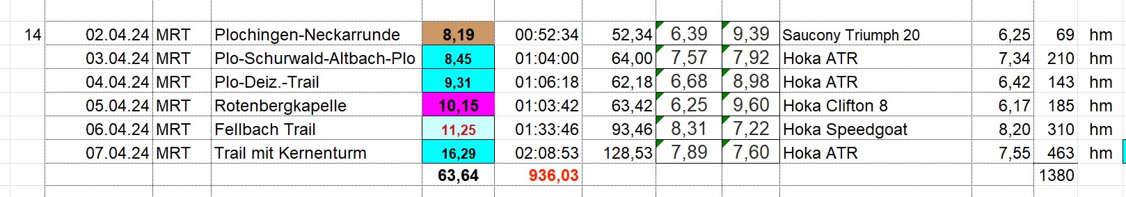 Die Woche ergaben sich 115 km und fast 2000 hm. In 4 Wochen werden ich mit dieser Streckenlänge 1000 hm mehr schaffen müssen. Auf anspruchsvollen Singletrails statt Waldautobahnen, Und stetig auf und ab, ohne längere Laufpassagen. Das wird ein harter Ritt werden.