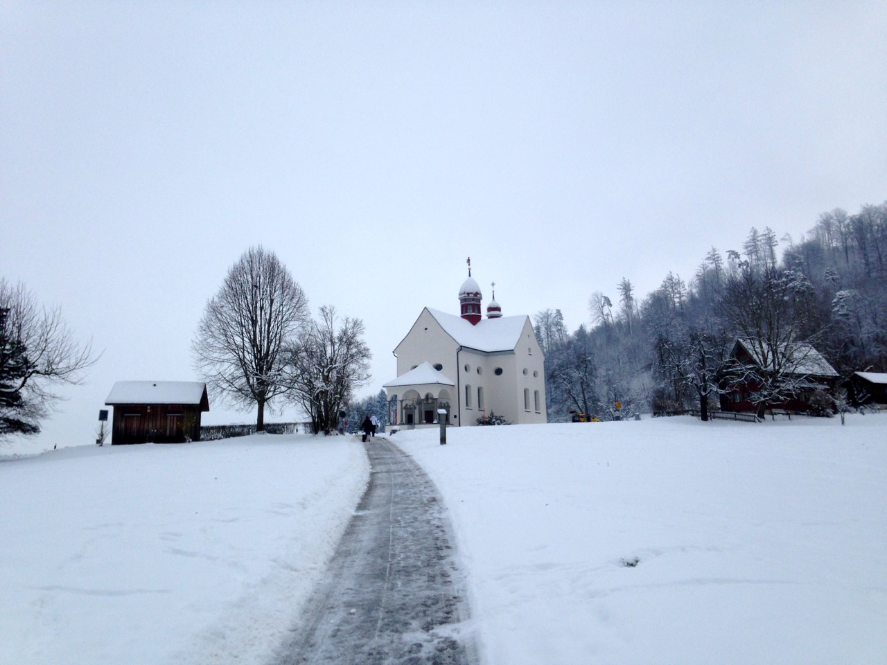 Eisiger Weg bei der Kapelle St. Verena.