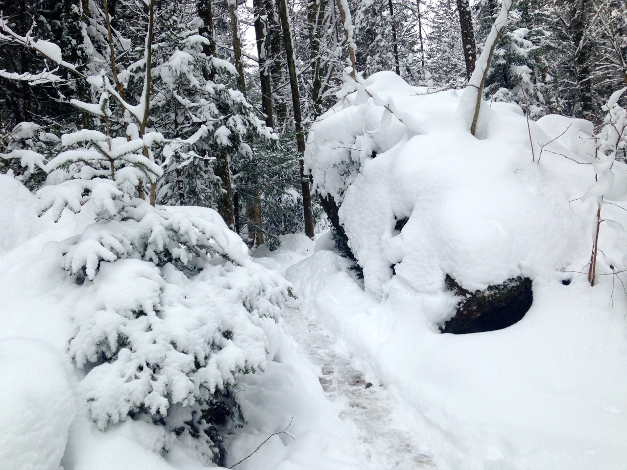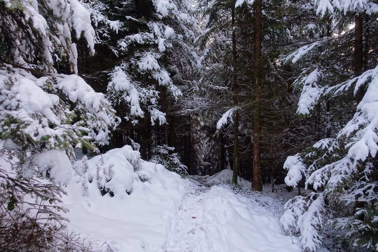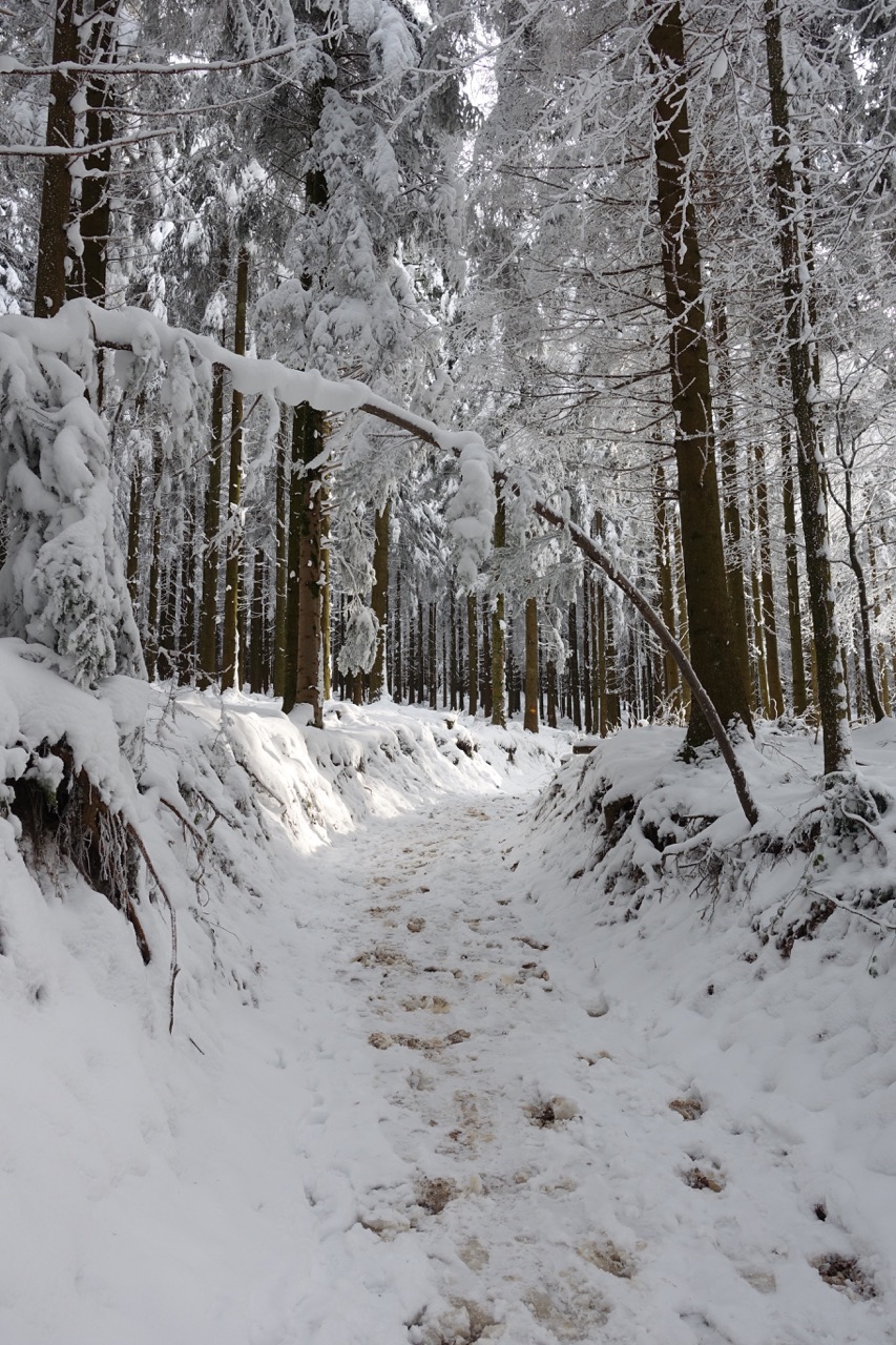 Von hier ging es dann nochmals einen Kilometer durch tiefverschneiten Wald.