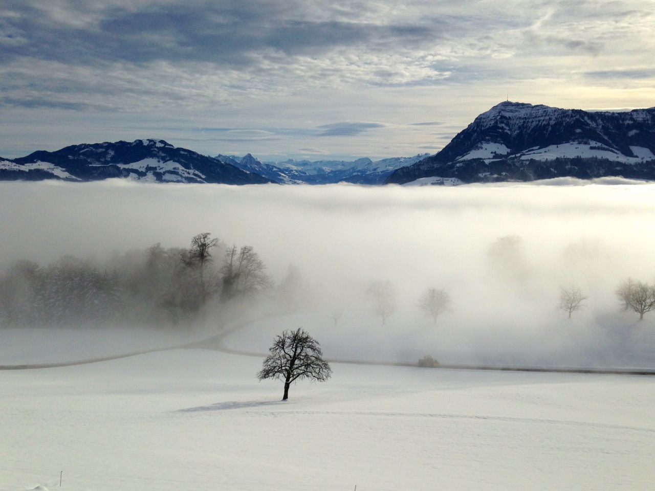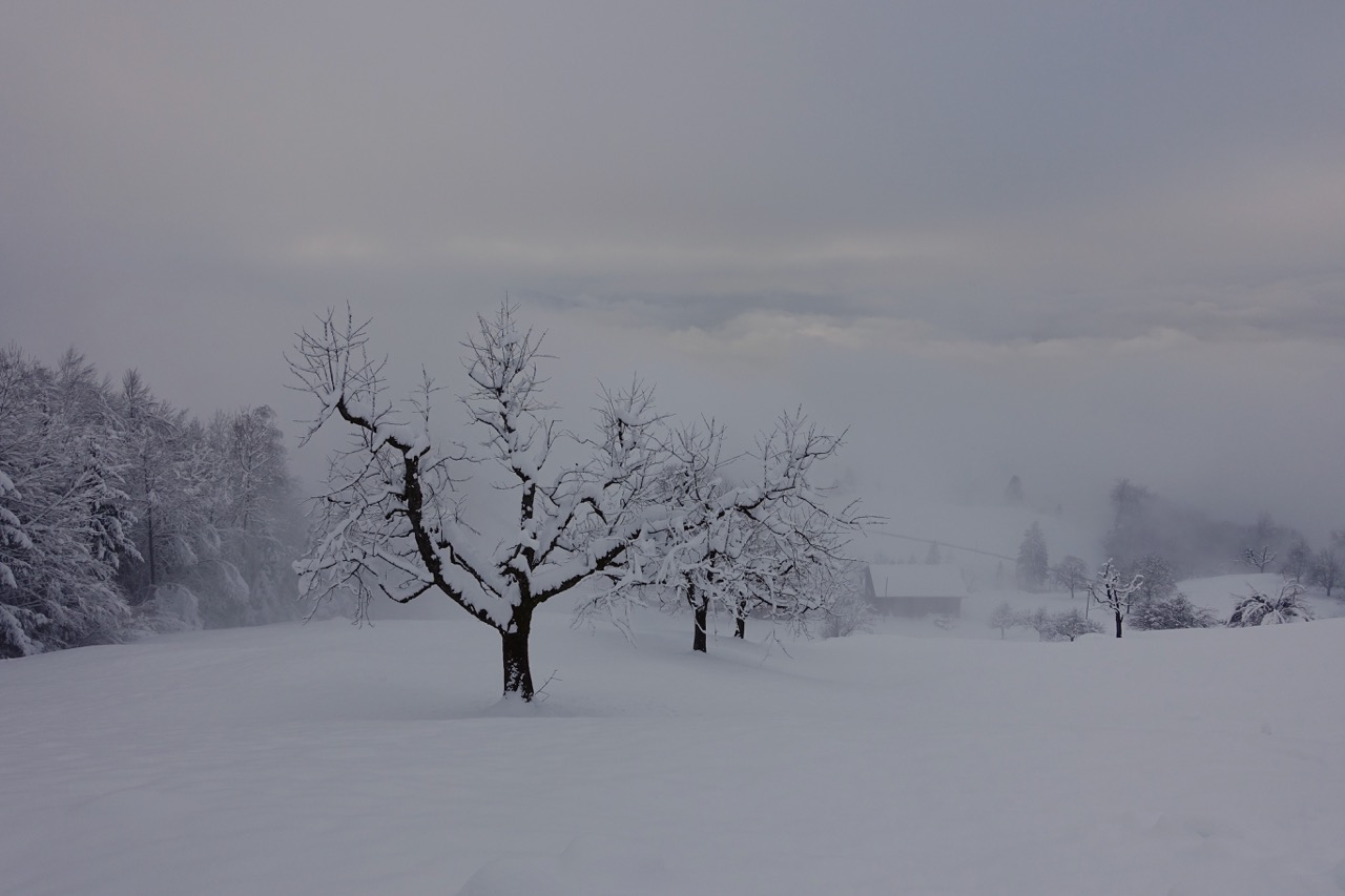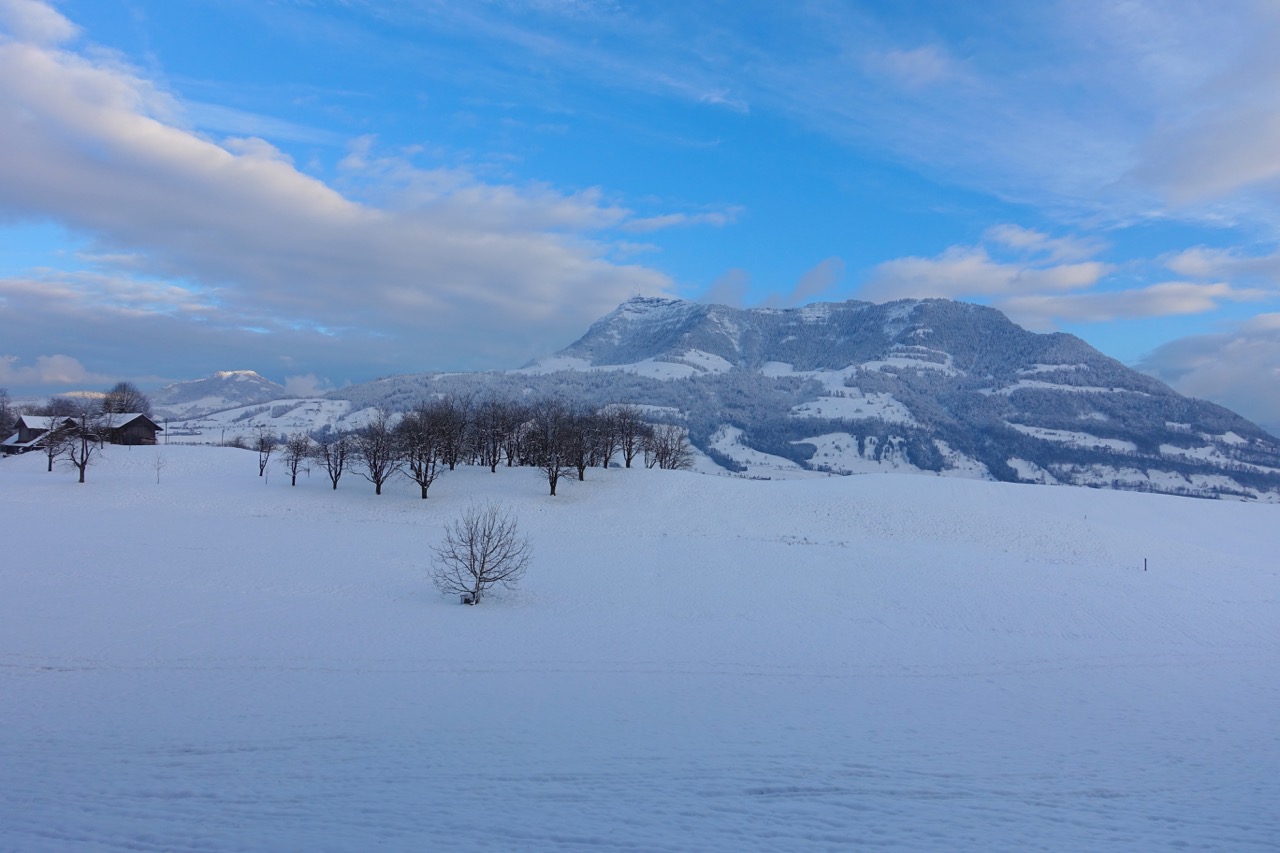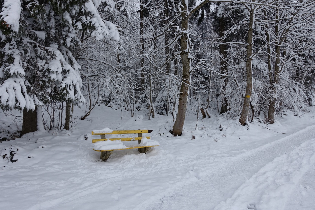 Auf der Rigi werden über den Winter nur die Höhenwege gepflegt, bzw. präpariert. Auf den Auf- und Abstiegsrouten sammeln sich bis zum Frühling umgestürzte Bäume an, und der Schnee liegt stellenweise sehr tief. Die Wege in tieferen Lagen mache ich deshalb nur bei sehr guter Witterung.