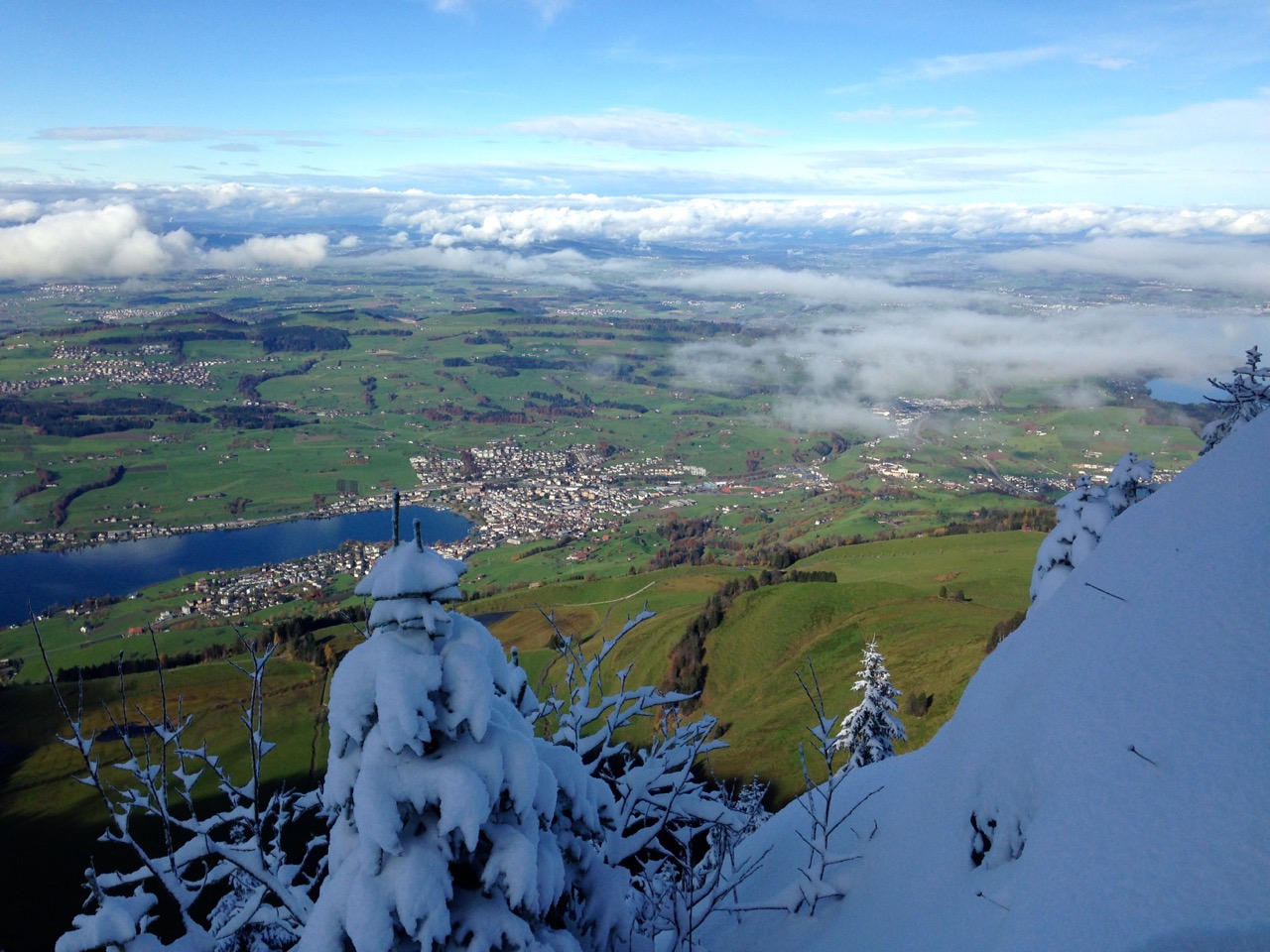 Abstieg Richtung Arth: Hier befand ich mich gerade zwischen zwei Wolkenschichten: eine über mir, und eine unter mir.