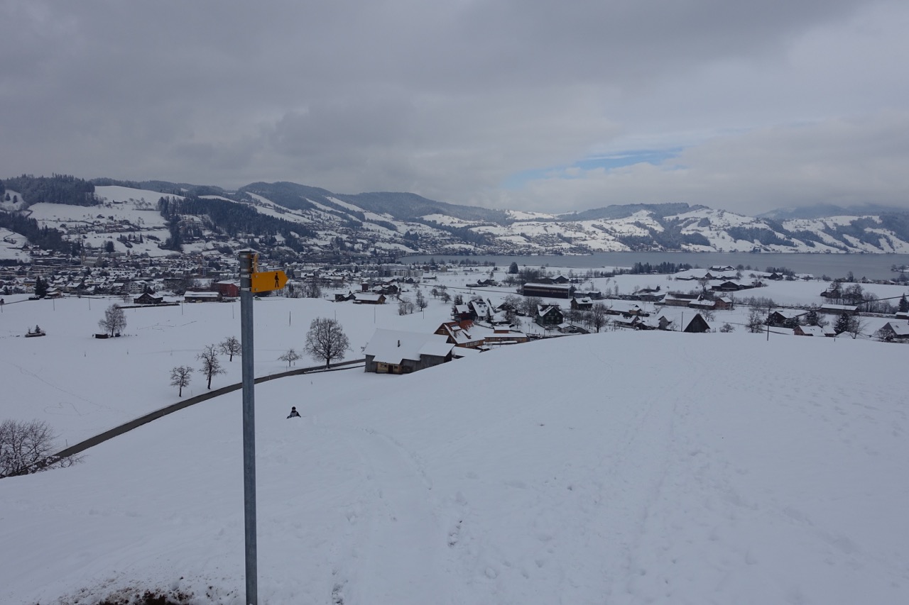 Bei Rufiberg könnte man diesen schönen Bergwanderweg Richtung Goldau nehmen. Der ist allerdings ziemlich steil und ich habe den selbst im Sommer noch nie ausprobiert. Ich bin stattdessen - wie immer - die Strasse runtergelaufen.