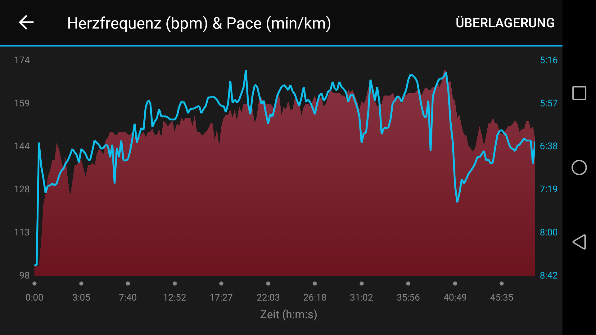 Laufen 7,04km in 46:46 Pace 6,38