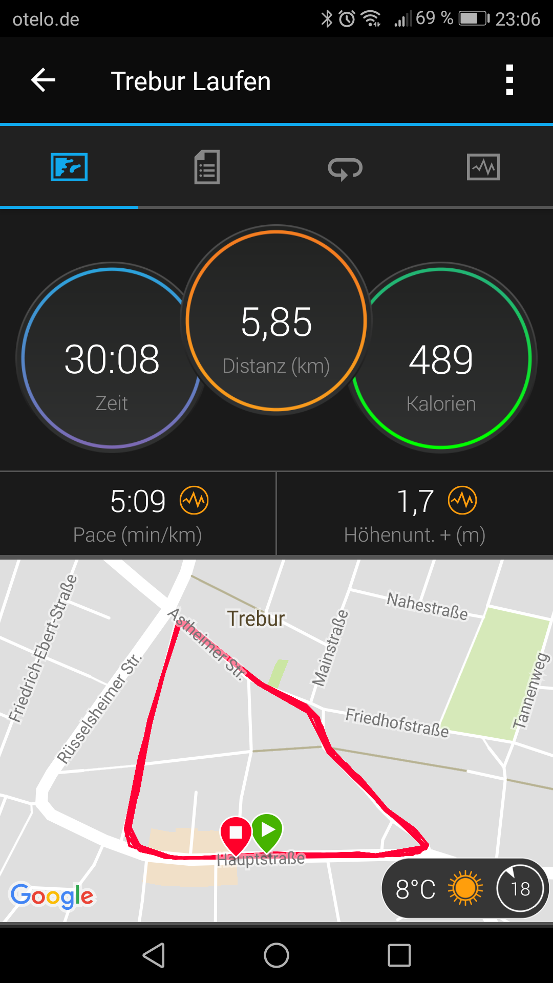 Laufen 8,35km in 58:41 Pace 7,02