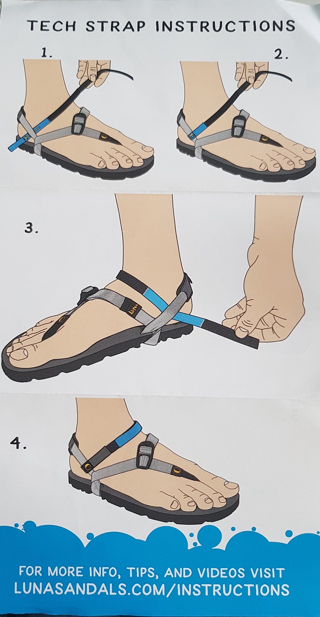 Recht kurz gesagt, wenn der Fersenriemen rutscht, ist zu wenig Zug auf dem System. Es gibt eine Facebookgruppe (Luna Sandals in freier Wildbahn), die sich mit den Sandalen beschäftigt. Dort werden ständig Fragen zur richtigen Einstellung gestellt und auch beantwortet. Vielleicht hilft das ja...