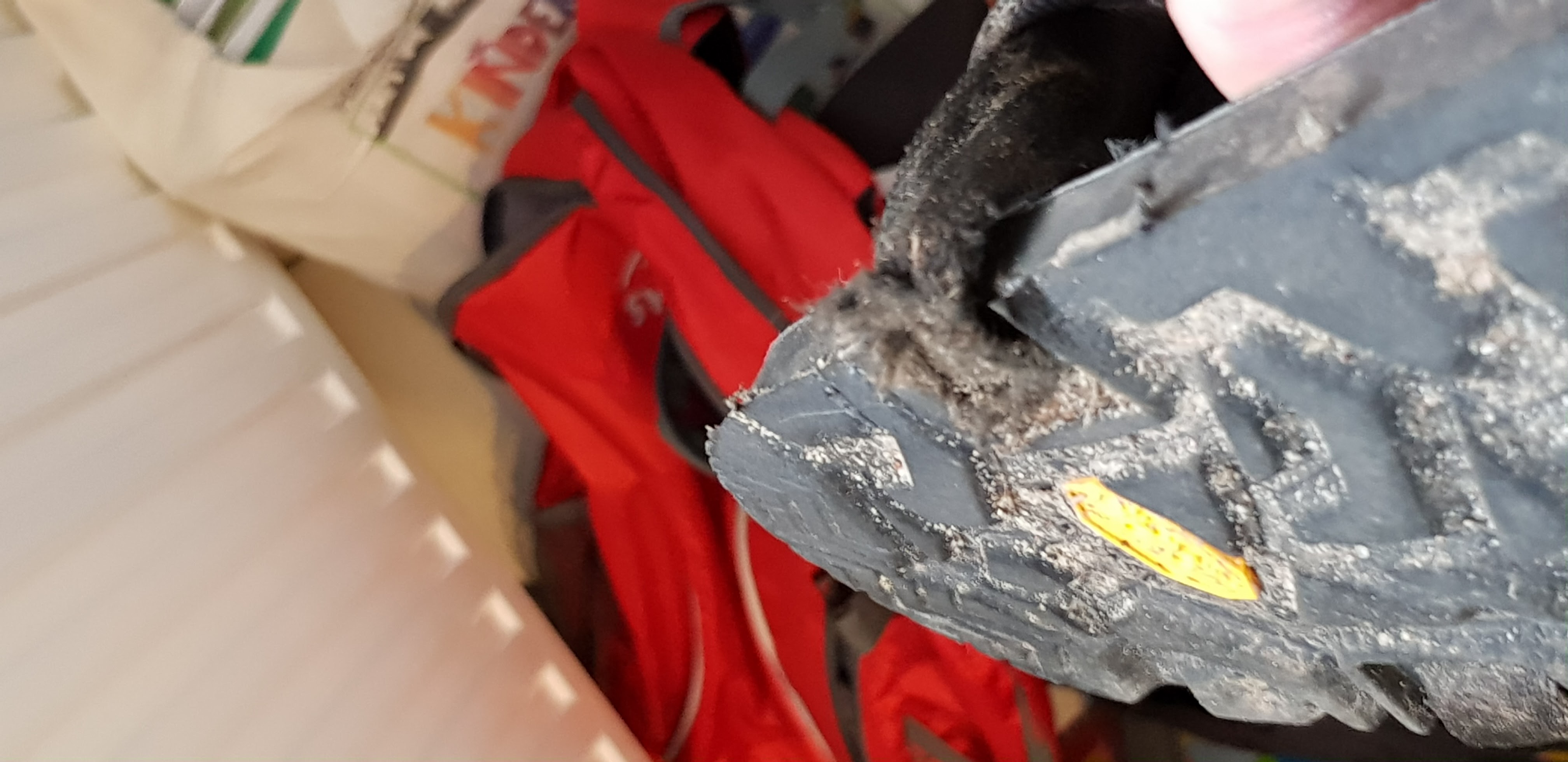 Viel doofer ist, dass ich bei meinen tollen Lunas am rechten Fuß auf der einen Seite die angeblich unkaputtbare Schnürung schon fast durchgerockt habe.