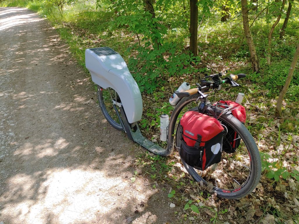 Im hinteren Teil des Deckels habe ich Solarzellen eingelassen, um auch mit der Technik (Telefon,Pulsmesser, Beleuchtung) autark zu sein. Dafür musste ich den Deckel aber sehr steif bauen, was etwa 200g zusätzlich ausmacht. Das Mehrgewicht ist also gar nicht so dramatisch.