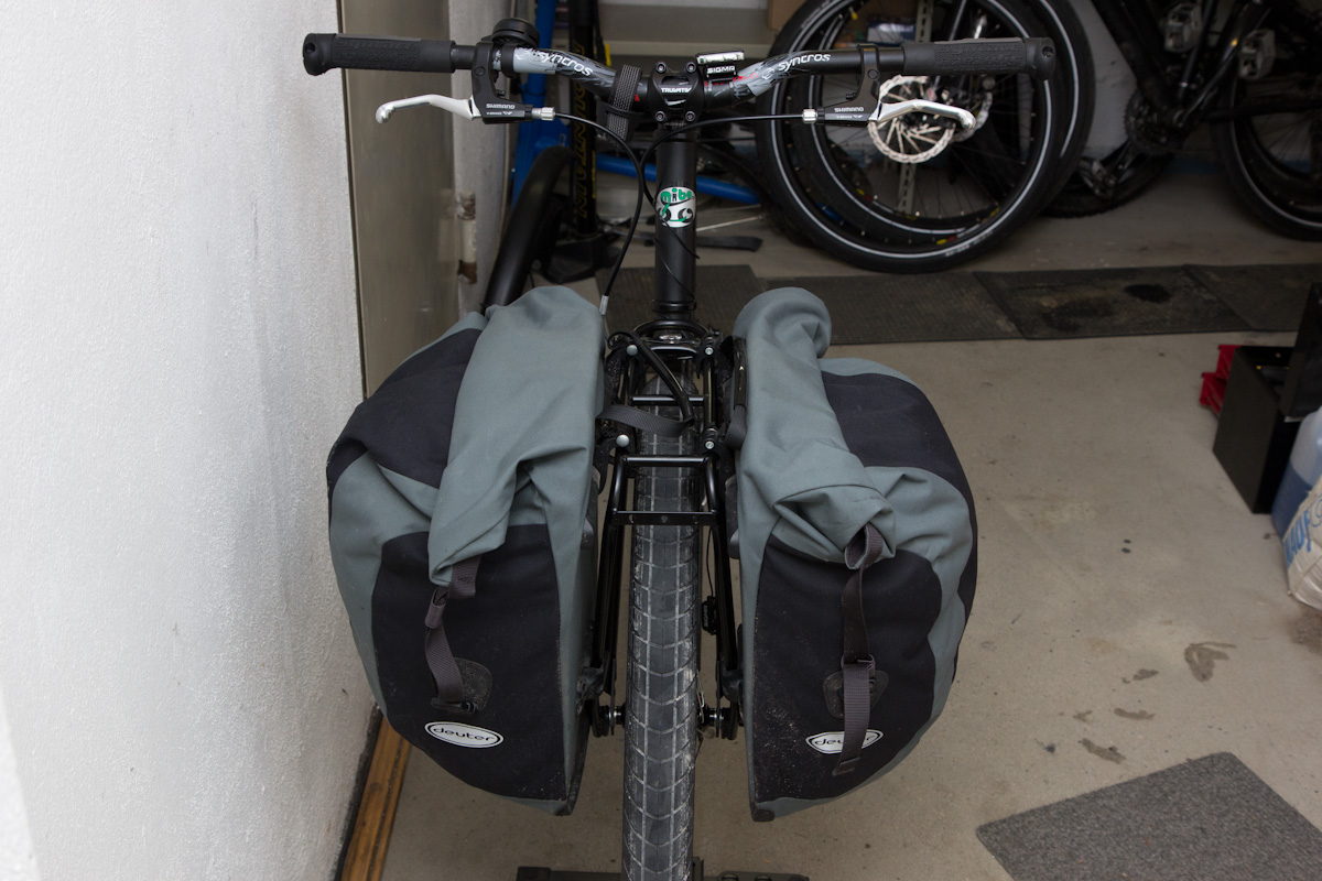 Das mit der Topeak-Tasche war für mich mal zum visualisieren gedacht - nicht wirklich praktikabel. Die Seitentaschen sind deuter DS Rack Pack (2x24 Liter) und sind ganz nach vorne geschoben sogar nutzbar. Man kann dann halt nimmer den vollen "Schwinger" machen, aber mit Knie anwinkeln gehts - da stoße ich dann eher an den Lenker...