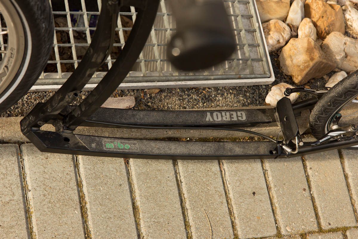 Drop's auf Dauer...? Da wäre ich persönlich ein wenig vorsichtig, wobei Mibo auf die Stabilität des Rahmens schwört. Ich habe wegen einer weiteren Bohrung für einen zweiten Flaschenhalter angefragt. Auch das soll der Rahmen mühelos über sich ergehen lassen. Den neuen Geroy gibt es inzwischen in unzähligen Varianten. Mit Zwischenblech im Trittbrett, mit Ständerhalterung, mit diversen Naben und auch mit doppelten Ausfallenden! Das scheint darauf zu deuten, dass der Rahmen wirklich stabil sein soll.
