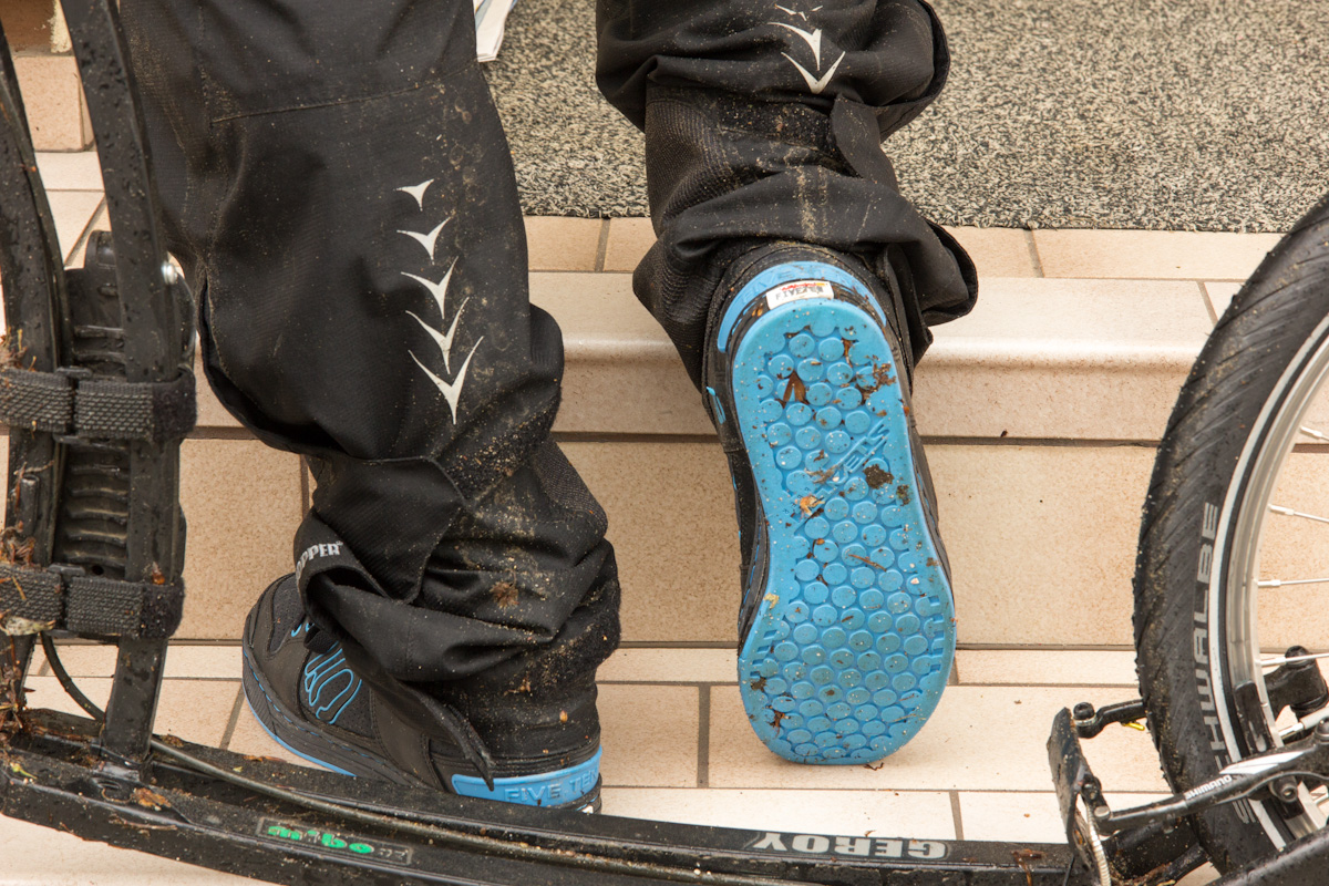 Heute gabs bei 10°C & Regenschauern gleich zwei Premieren: a) mein Roller wurde das erste Mal geduscht und b) war es die erste Härteprobe für die FiveTen Danny McAskill...