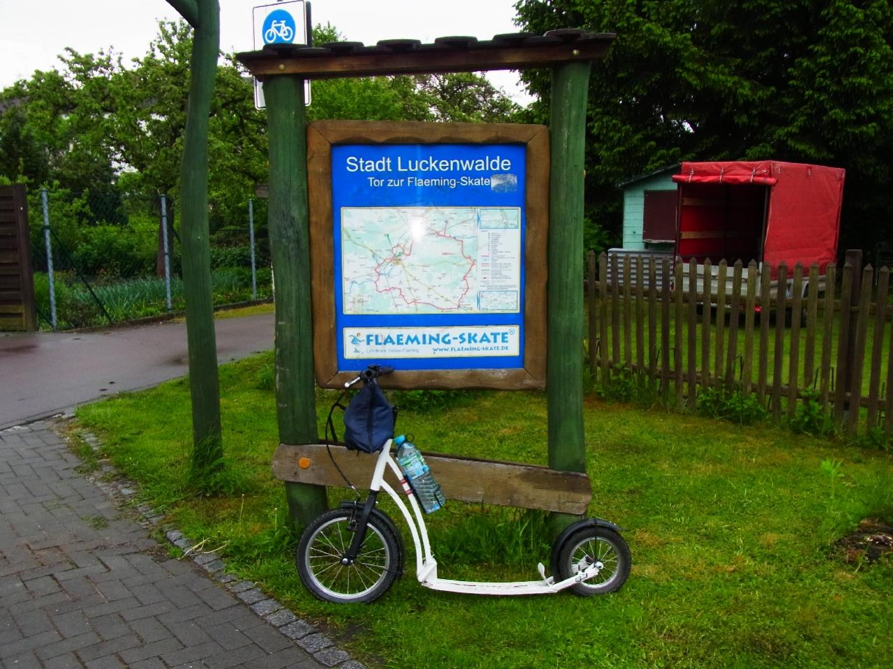 Der Plan: Morgens mit dem Roller zur Bahn, mit der Bahn nach Luckenwalde, dort eine Runde RK1 auf dem Fläming Skate (94,59km). In der Mitte der Runde buddyZB treffen, gemeinsam abhängen, zusammen fahren, nach dem Abschied den RK1 vollenden, zurückfahren zum Bahnhof in Luckenwalde und dann mit der Bahn wieder nach Berlin.