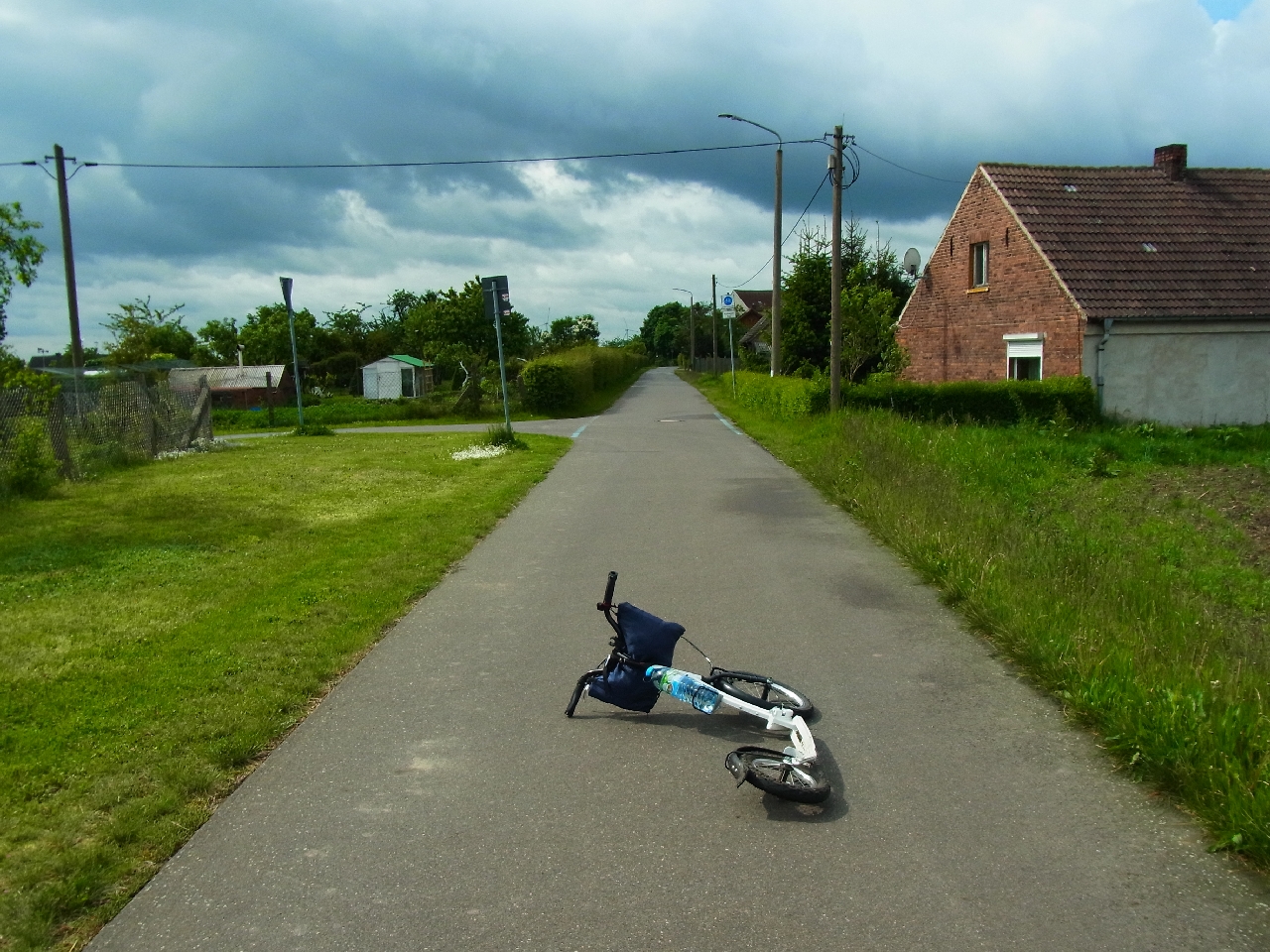 Ich finde allerdings, dass der Kleine auf dem Asphalt des Fläming-Skate nur unwesentlich anstrengender zu fahren ist als der Geroy,