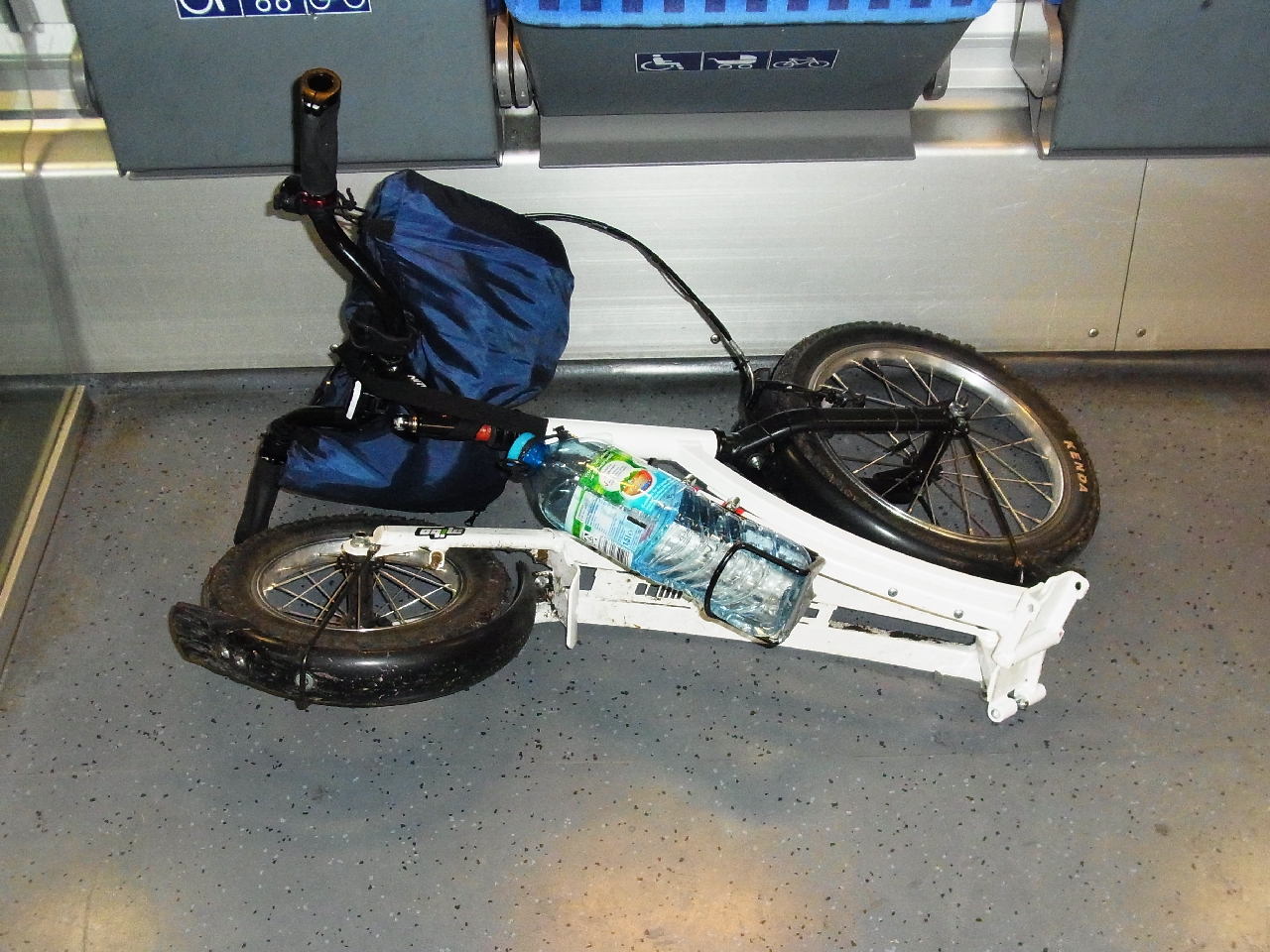 Die 3. Häfte der Einsätze geht einher mit einem geklappten oder komplettzerlegten Ferntransport in Tasche oder Koffer per Bahn, Fernbus oder Flieger. Am Ziel wird der Master zusammengebaut. Dieser Fahrer wird sicherlich über noch weitere Roller verfügen und er hat den Master mitgenommen, um am Ziel sein normales Trainingsprogramm annähernd aufrecht erhalten zu können.