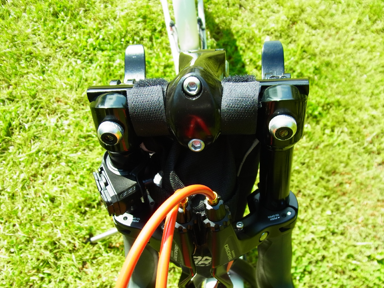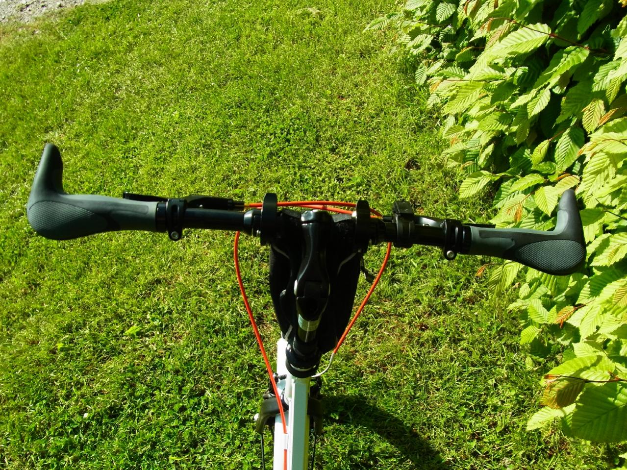 Da dieser Klapplenker sehr weit hinten steht, lasse ich auch die Minihörnchen als korrekt durchgehen. Lenkverhalten sehr gut und immer sicher. Der Klapplenker, der durch 2 Schnellspanner gesichert wird, wackelt nicht sondern ist sehr steif. Habe daran nichts auszusetzen.
