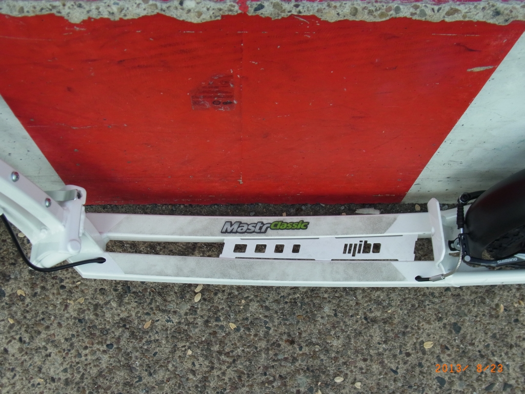 Ich bin also nach meiner Erstfahrt sehr zufrieden mit dem Mastr und habe nur deshalb auf eine weitere Runde verzichtet, weil noch kein Flaschenhalter montiert war. Diesen würde ich vielleicht am Lenker anbringen. Die Bohrungen am Rahmen würden auch gehen, sie sind aber auch bei diesem Roller für meinen Geschmack recht tief angebracht.