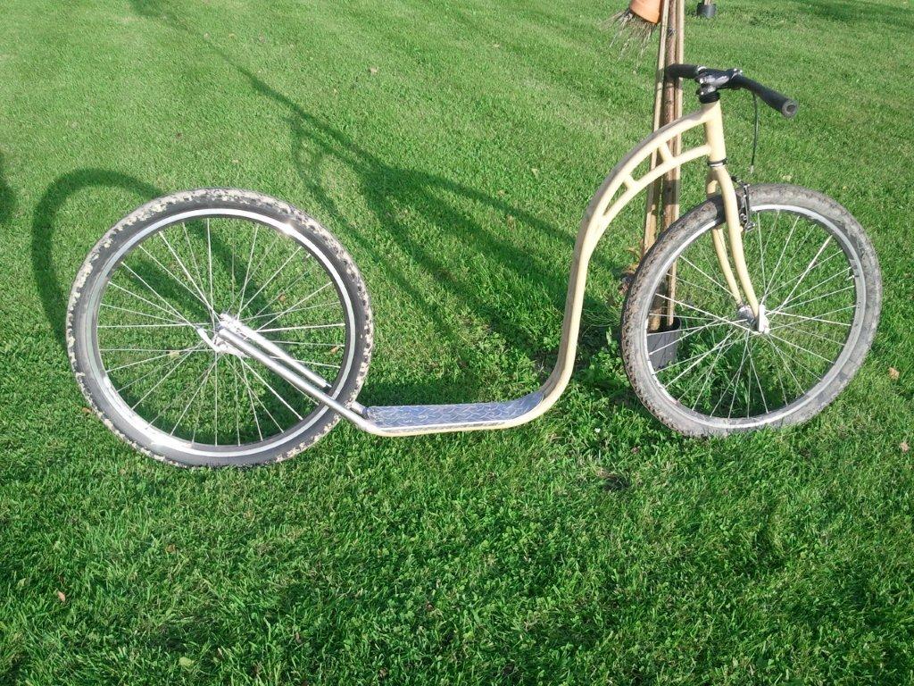 Es war nur ein Hobby, ich wollte 2x28 besitzen. "Aber weil sie nicht zum Verkauf stehen habe ich ein für mich verschweißt aus Aluminium . Es waren viel mehr Leute, die wollten auch eine 2x28" Roller. Gibt es jetzt 45 gemacht, genug